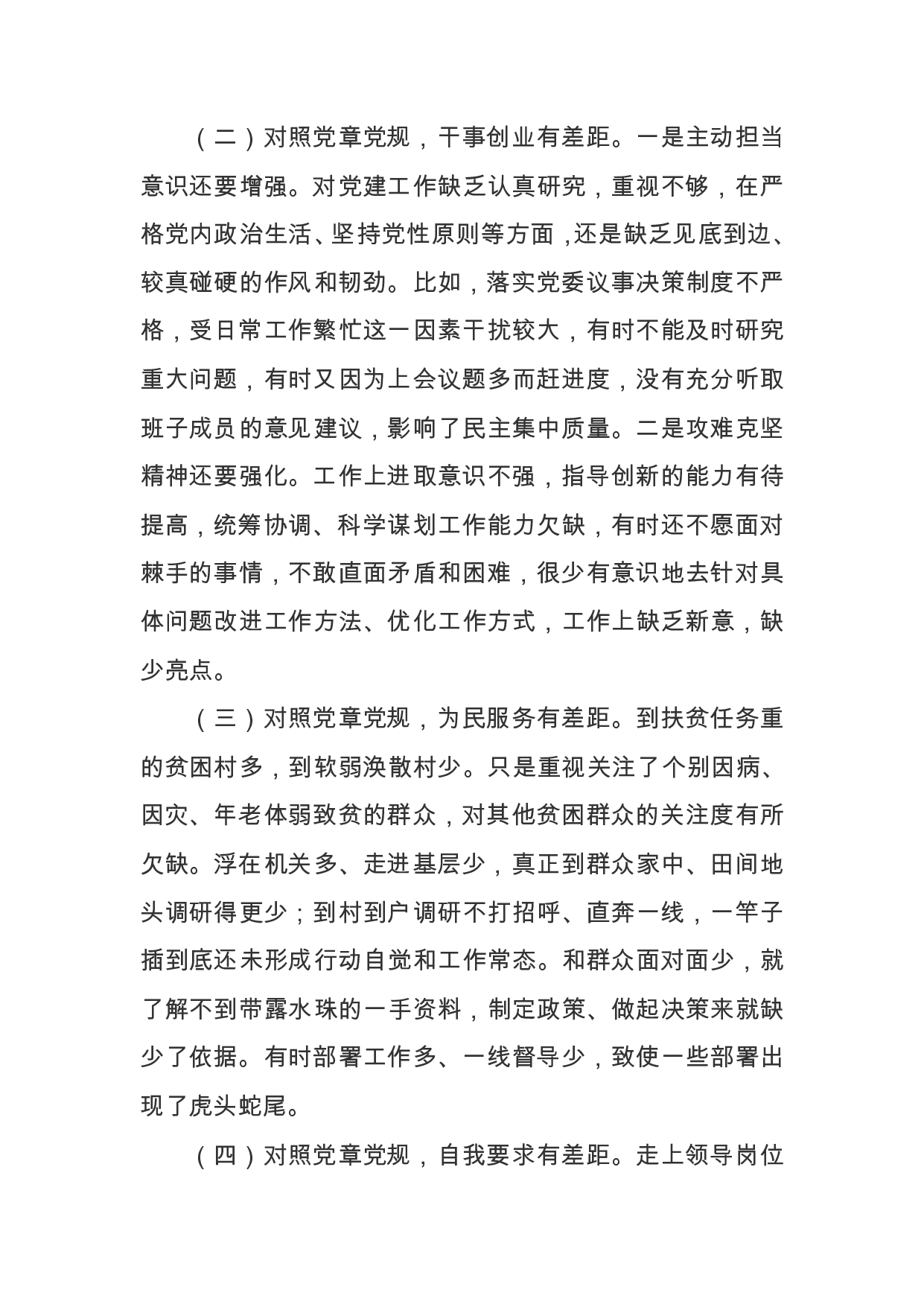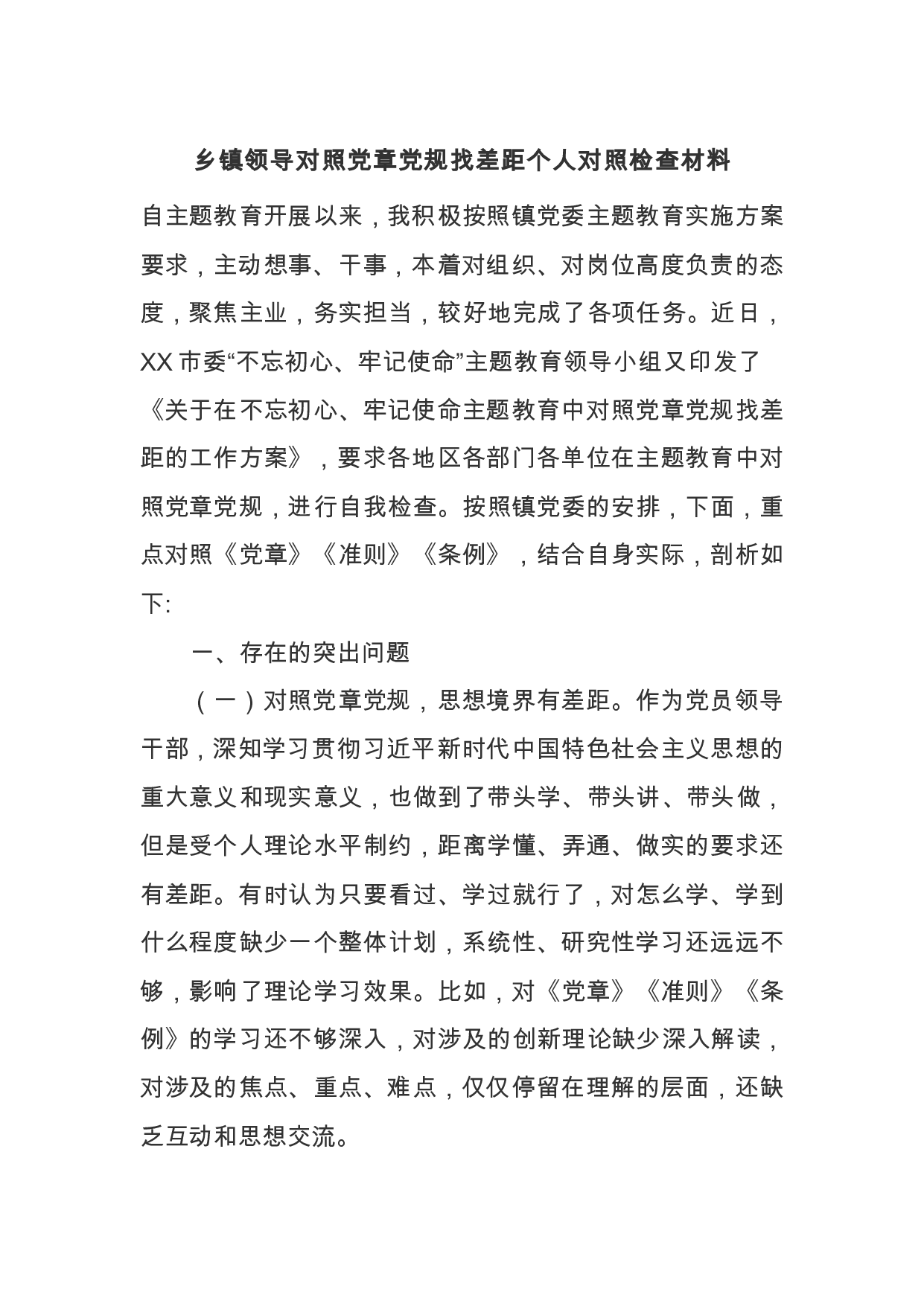 标题:镇领导对照党章党规找差距个人对照检查材料