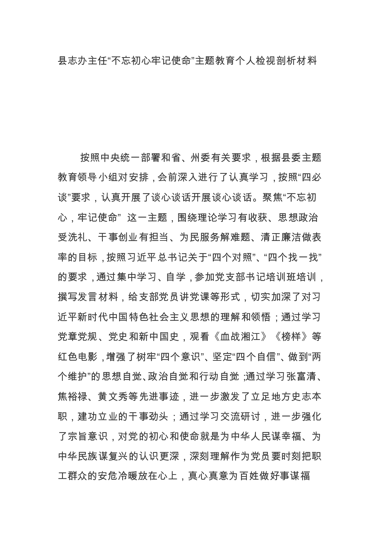 标题:县志办主任“不忘初心牢记使命”主题教育个人检视剖析材料