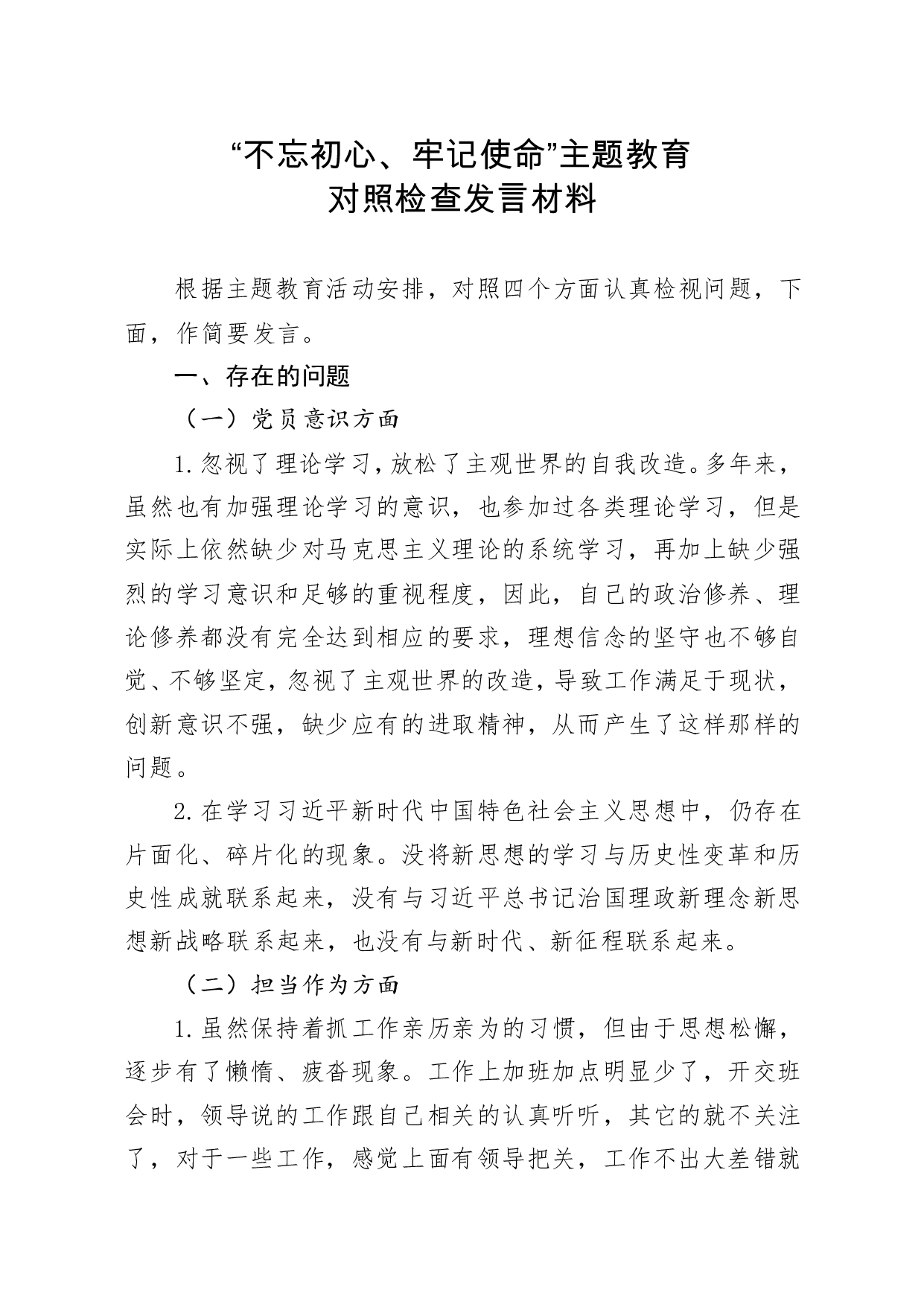 标题:不忘初心牢记使命主题教育对照检查材料发言