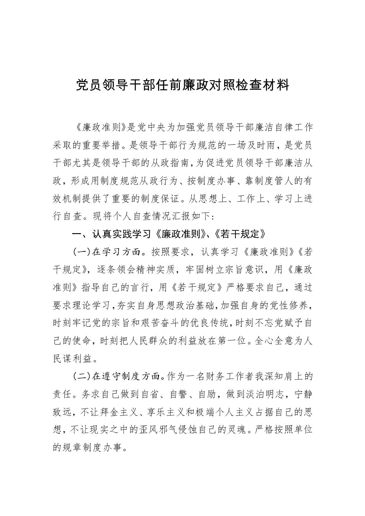 标题:党员领导干部任前廉政对照检查材料(一)