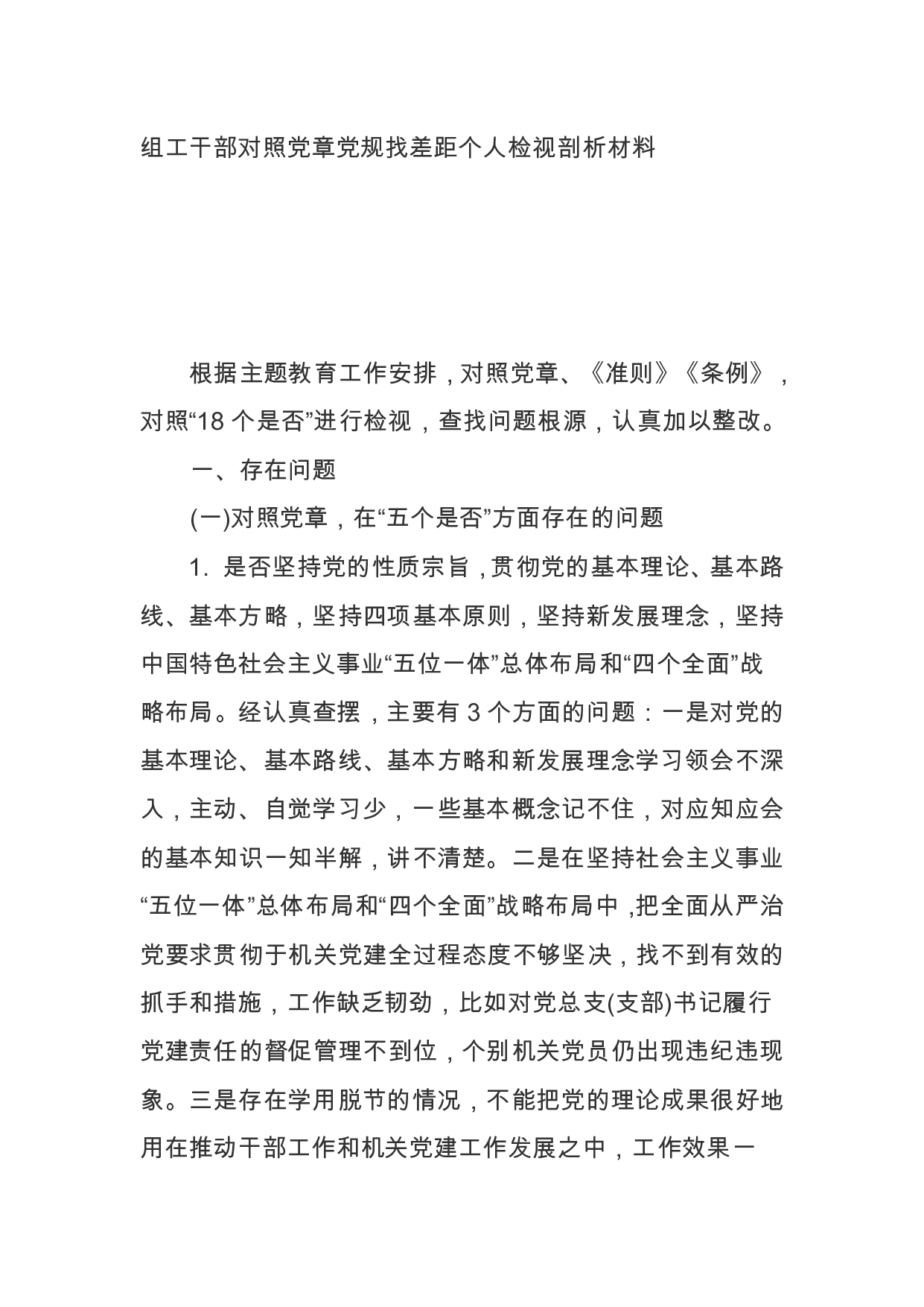 标题:组工干部对照党章党规找差距个人检视剖析材料
