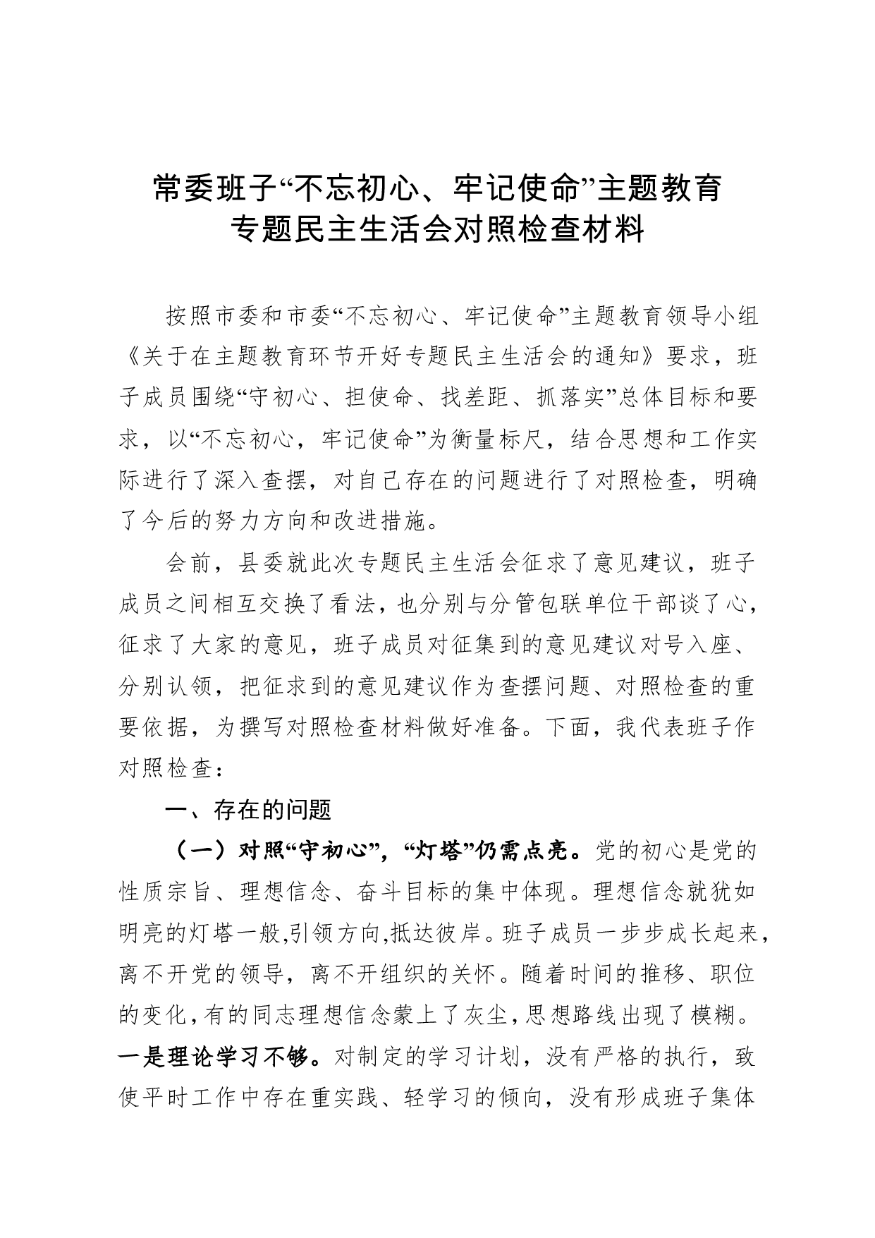 标题:不忘初心牢记使命主题教育民主生活对照检查材料