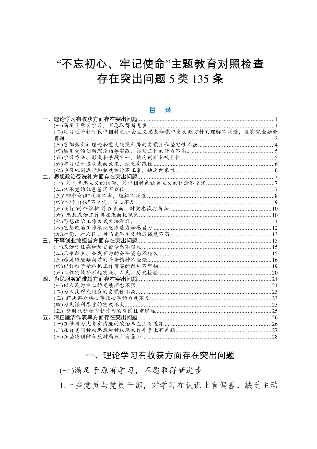 标题:【写作素材】不忘初心牢记使命主题教育对照检查存在突出问题5类135条