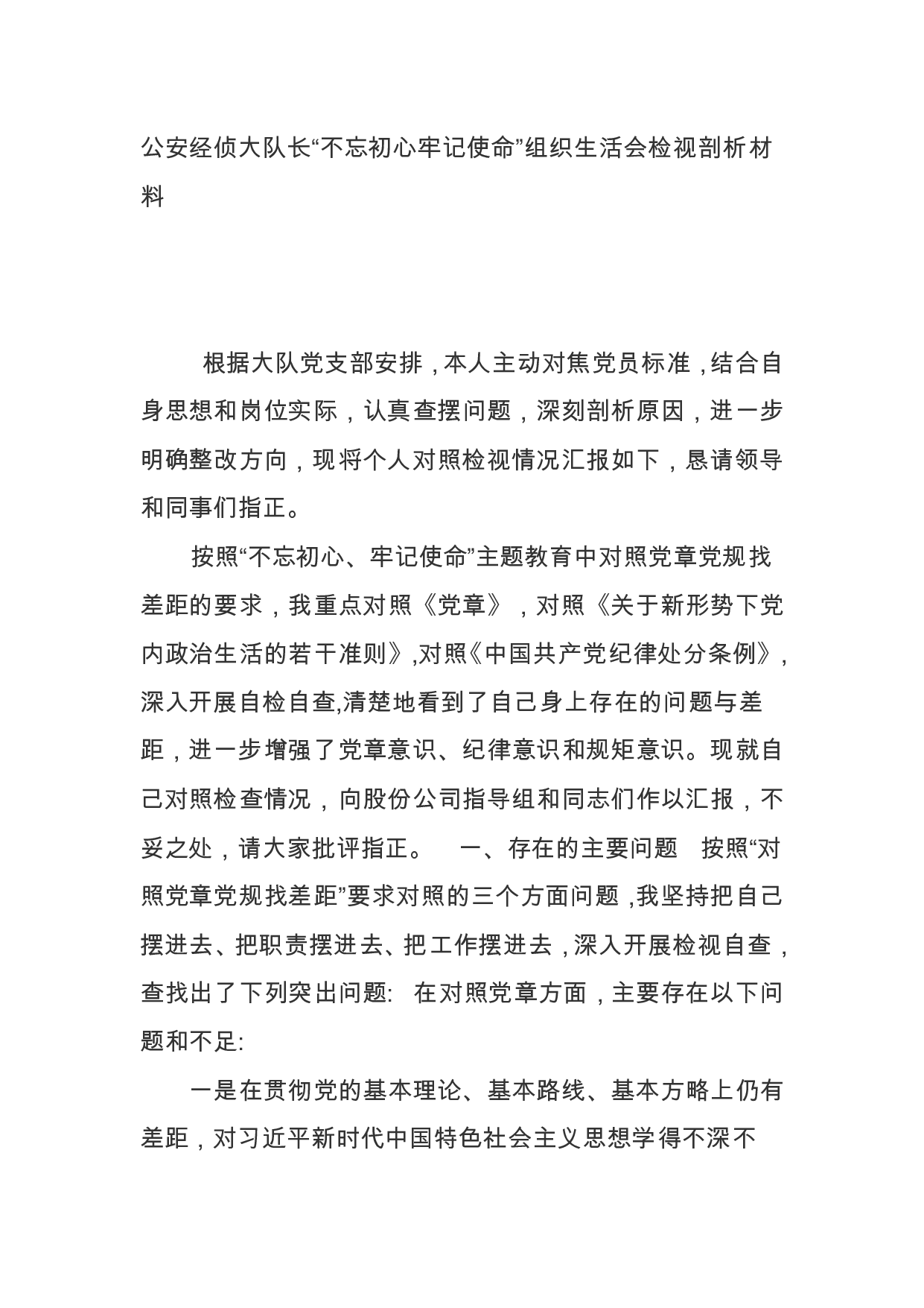 标题:公安经侦大队长“不忘初心牢记使命”组织生活会检视剖析材料