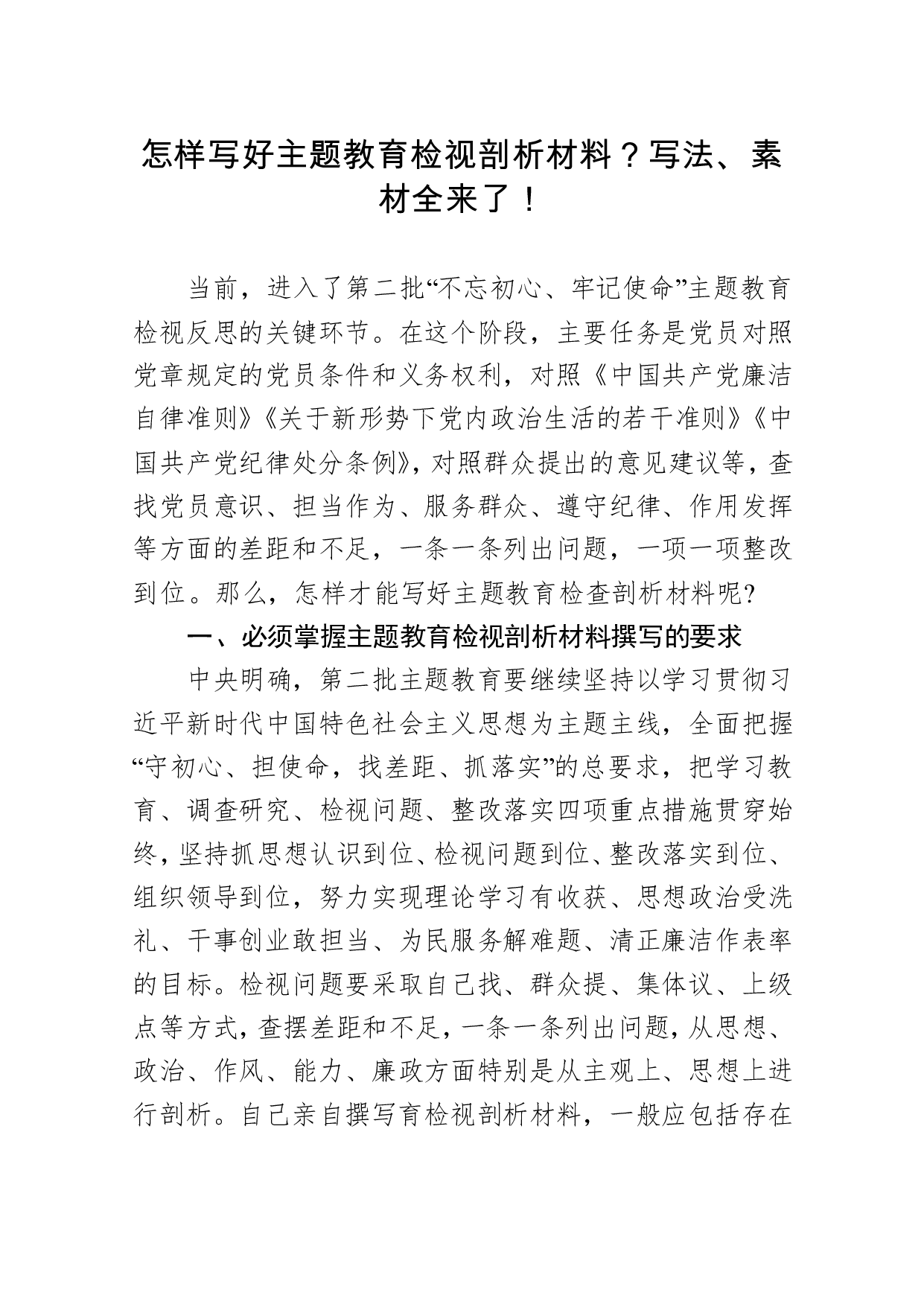 标题:【写作素材】怎样写好主题教育检视剖析材料写法提纲素材全来了