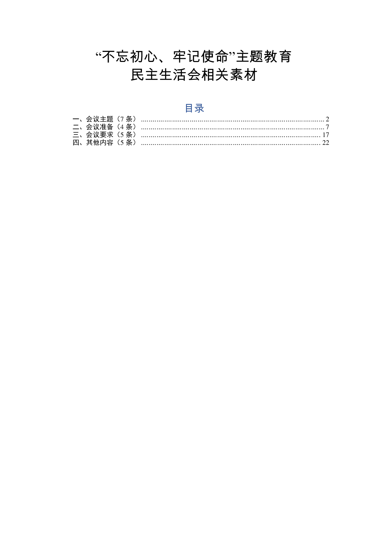 标题:主题教育民主生活会筹备相关内容