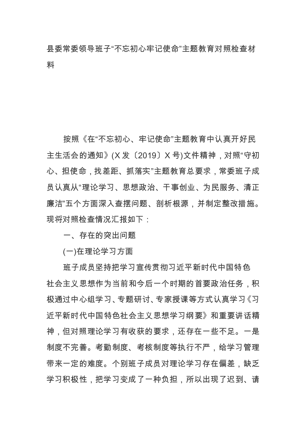 标题:县委常委领导班子“不忘初心牢记使命”主题教育对照检查材料