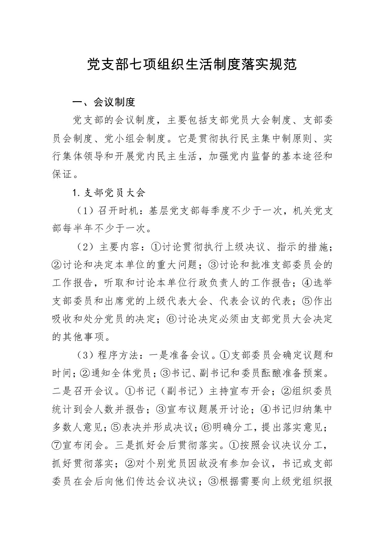 标题:党支部七项组织生活制度落实规范
