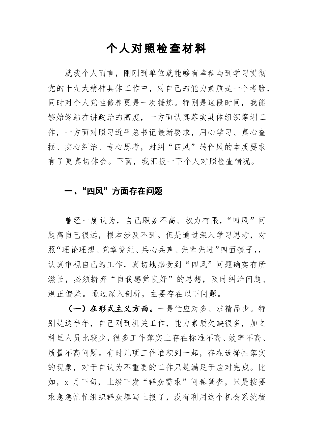 标题:2018年个人对照检查材料3