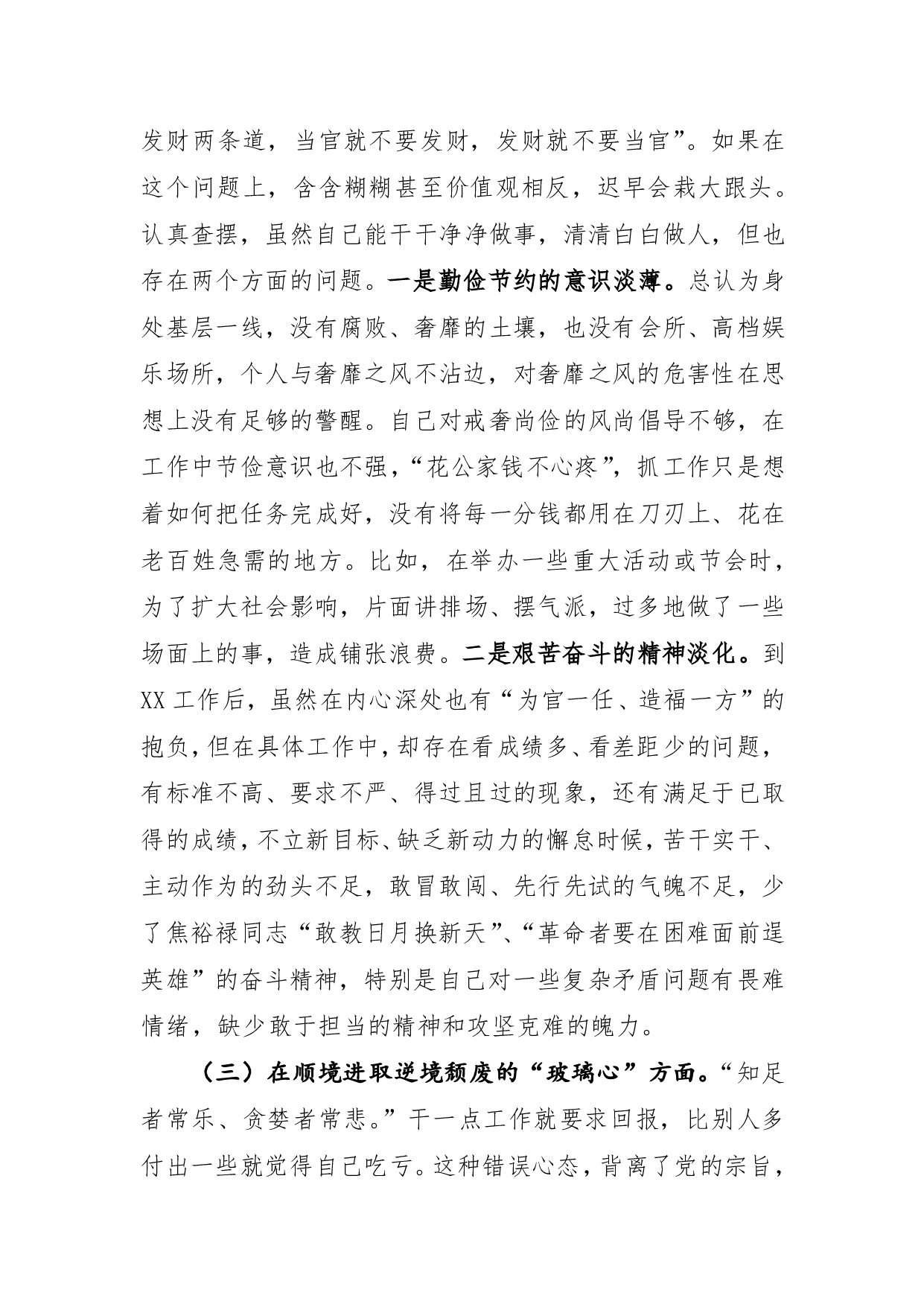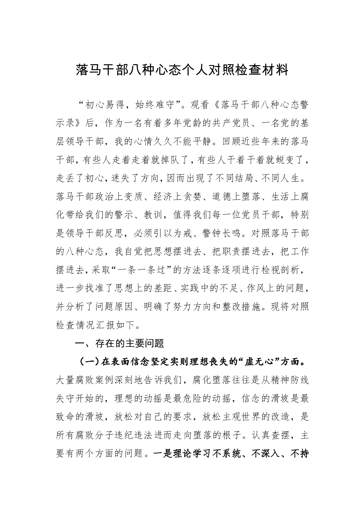 标题:落马干部八种心态个人对照检查材料