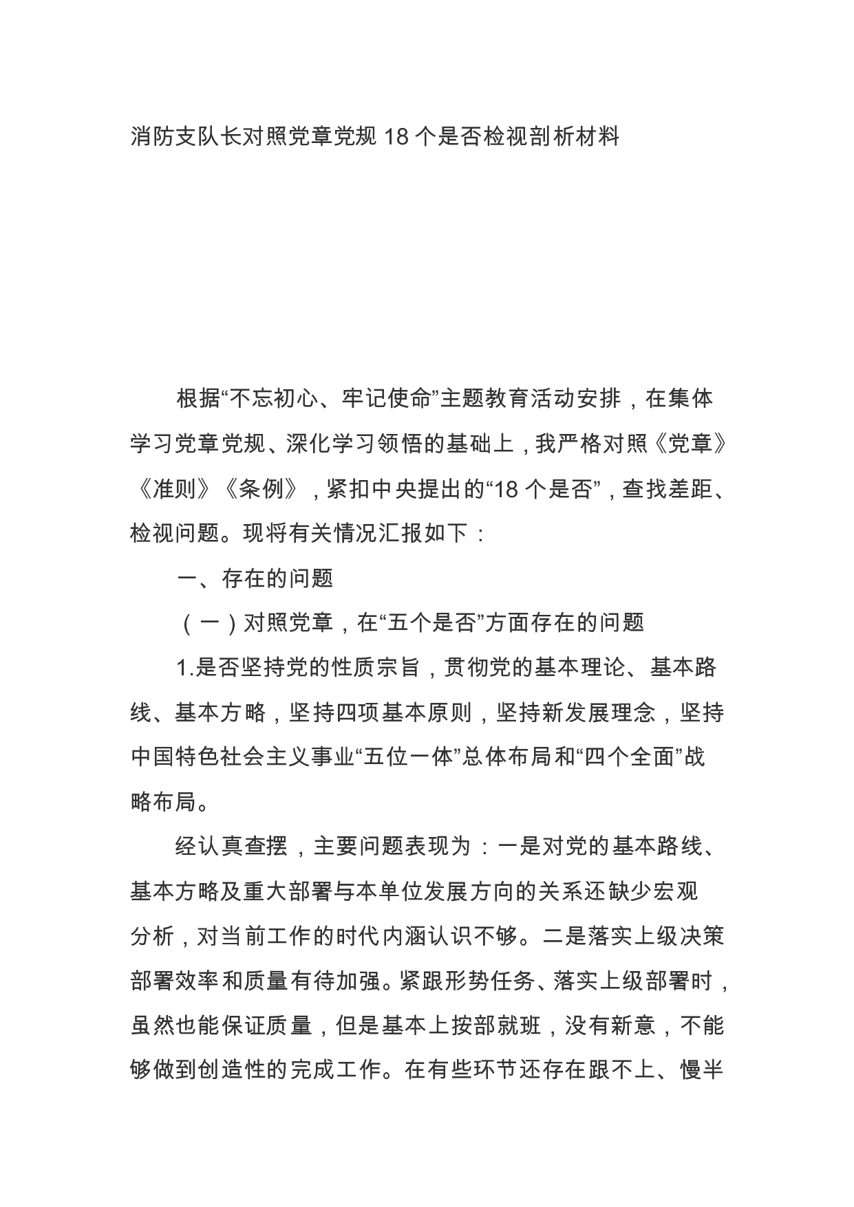 标题:消防支队长对照党章党规18个是否检视剖析材料