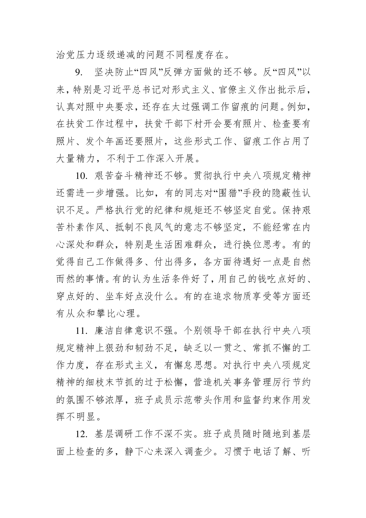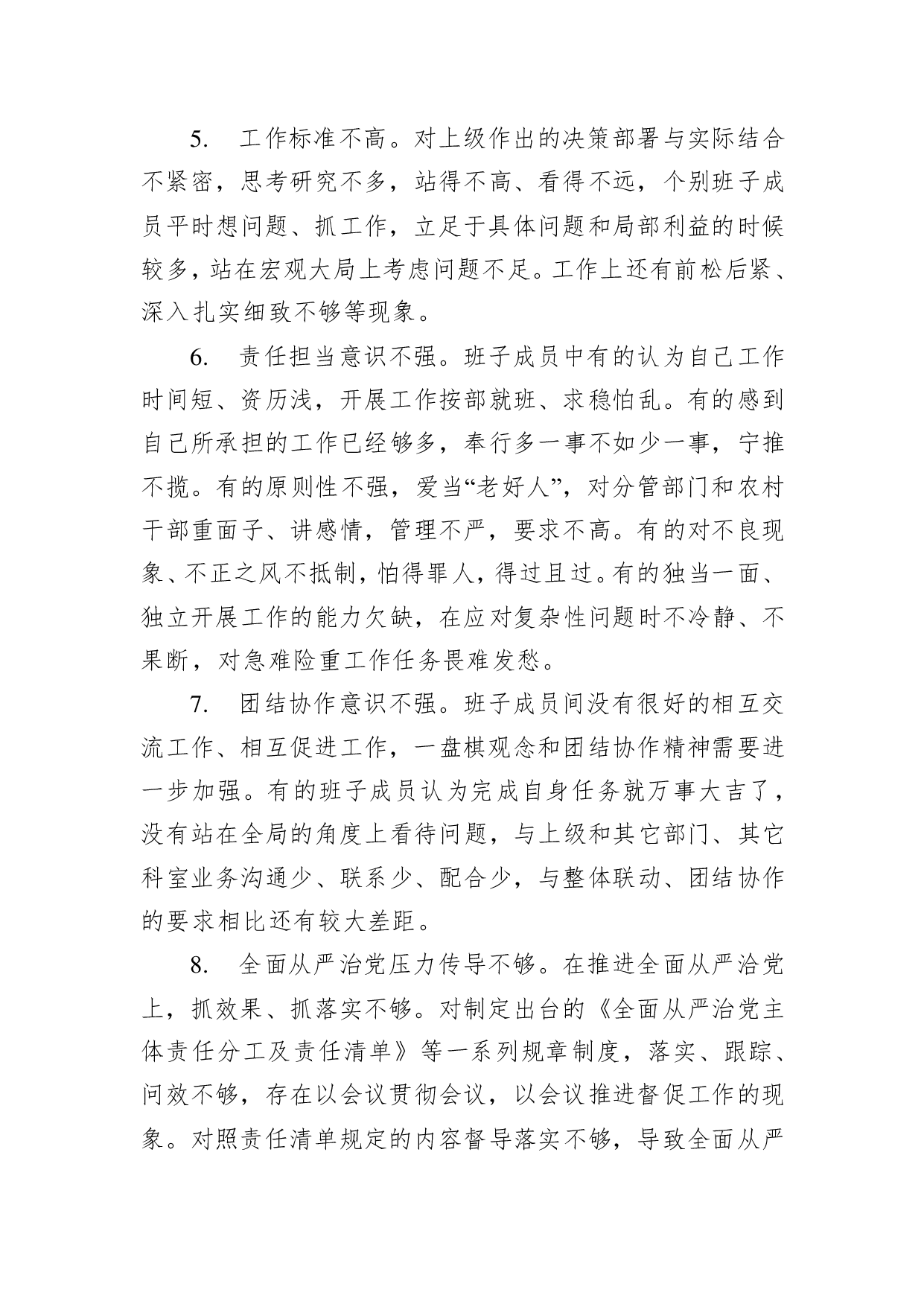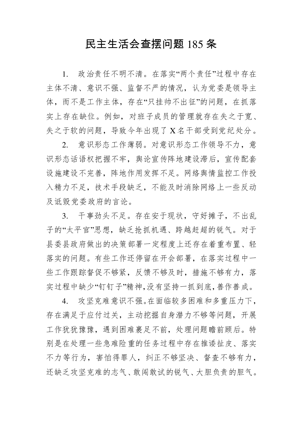 标题:民主生活会查摆问题185条