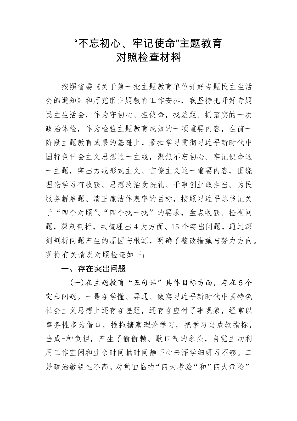 标题:笔友分享不忘初心牢记使命主题教育对照检查材料
