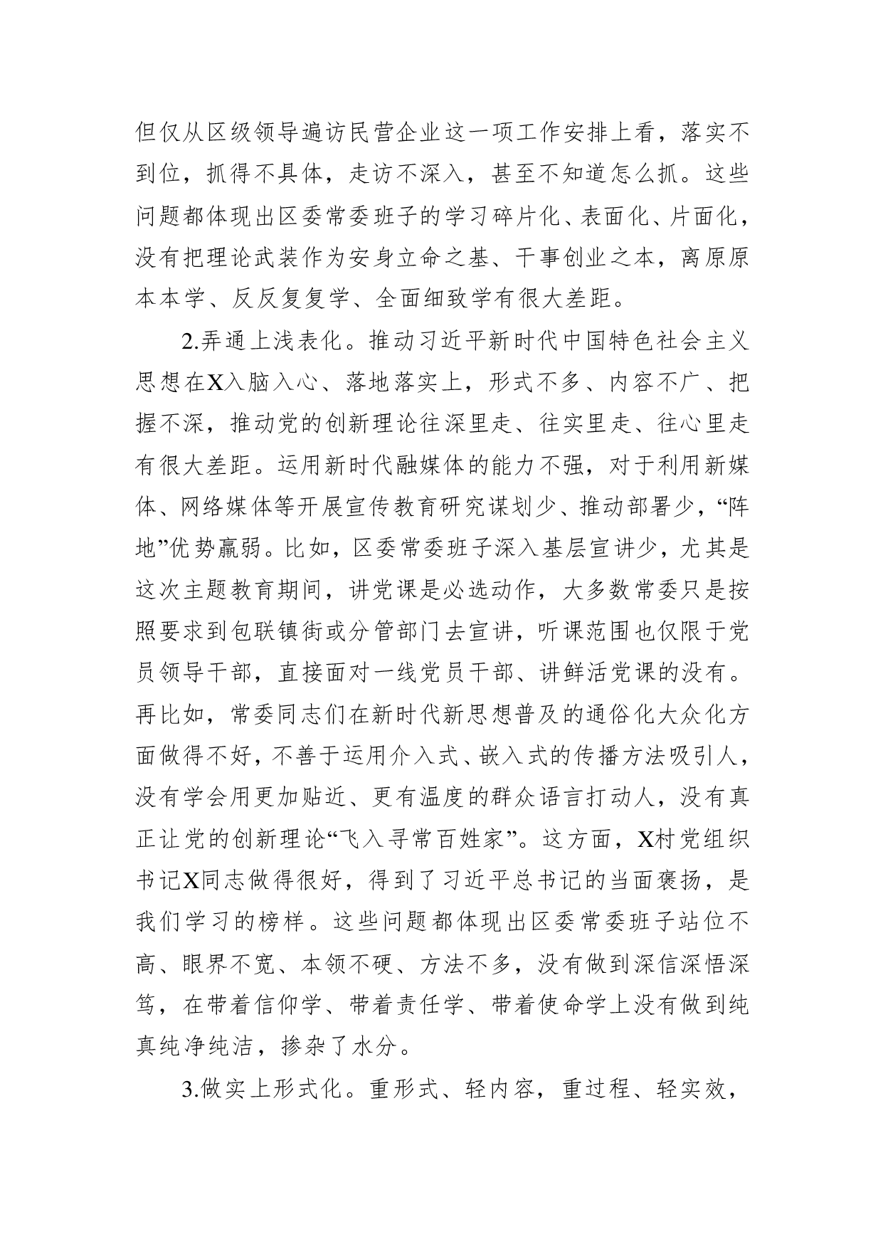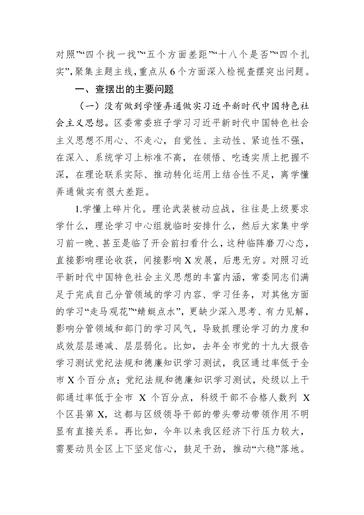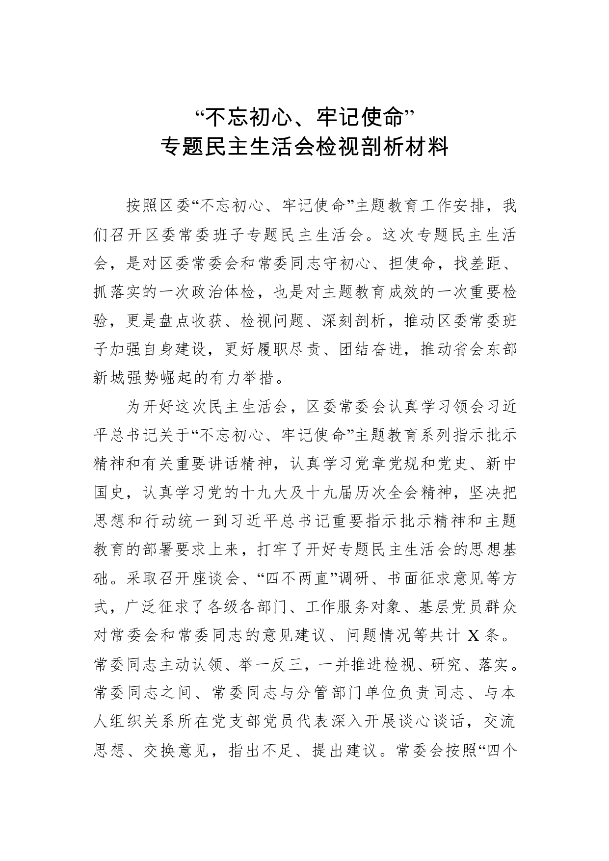 标题:区委常委会专题民主生活会检视剖析材料