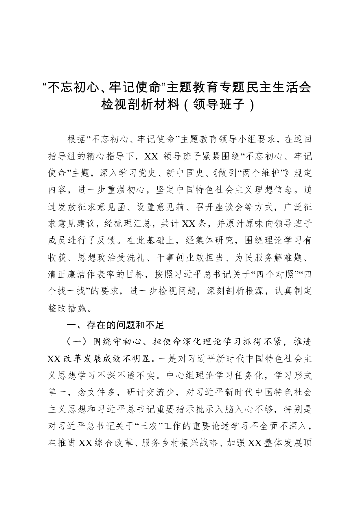 标题:民主生活会相关材料(班子和个人对照检查和主持词)3篇