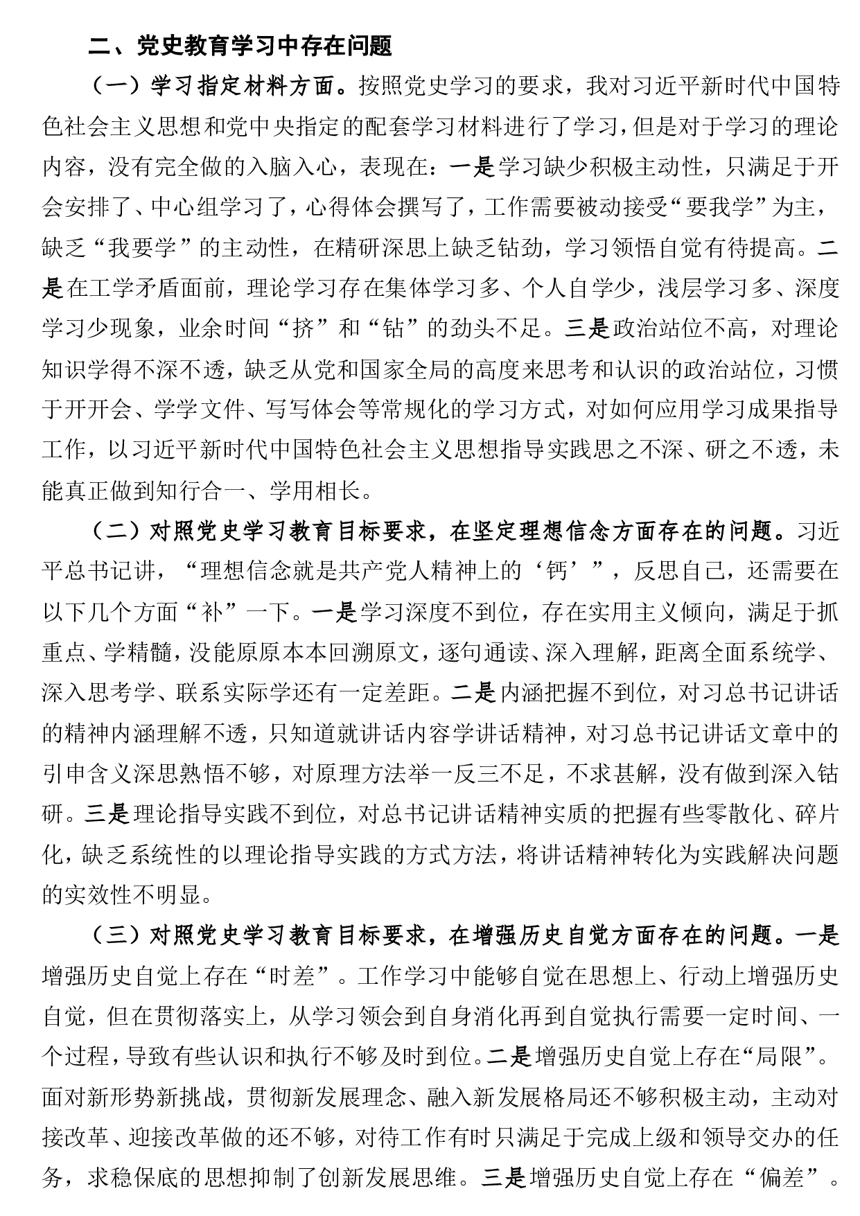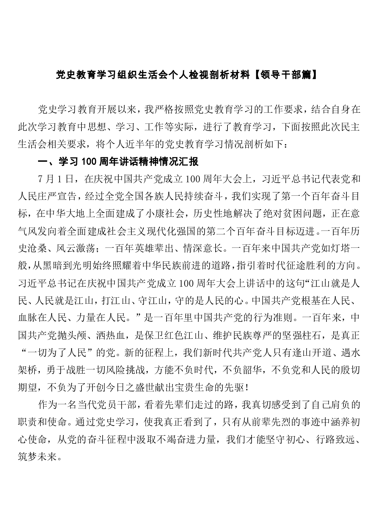标题:党史教育学习组织生活会个人检视剖析材料【领导干部篇】