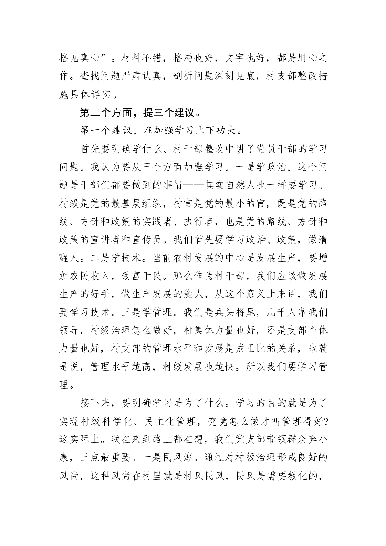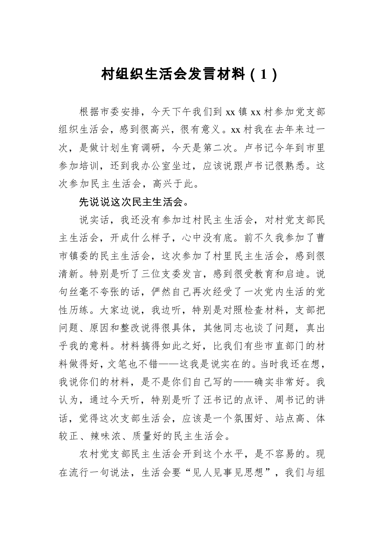 标题:村干部组织生活会发言材料(1)