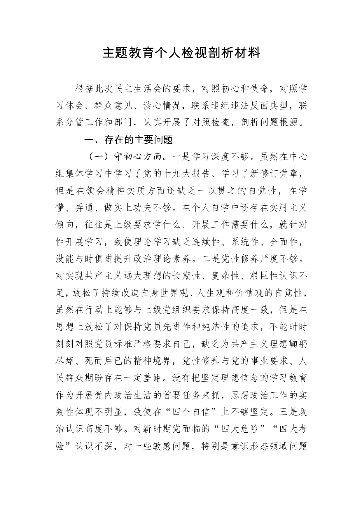 标题:笔友分享主题教育个人检视剖析材料
