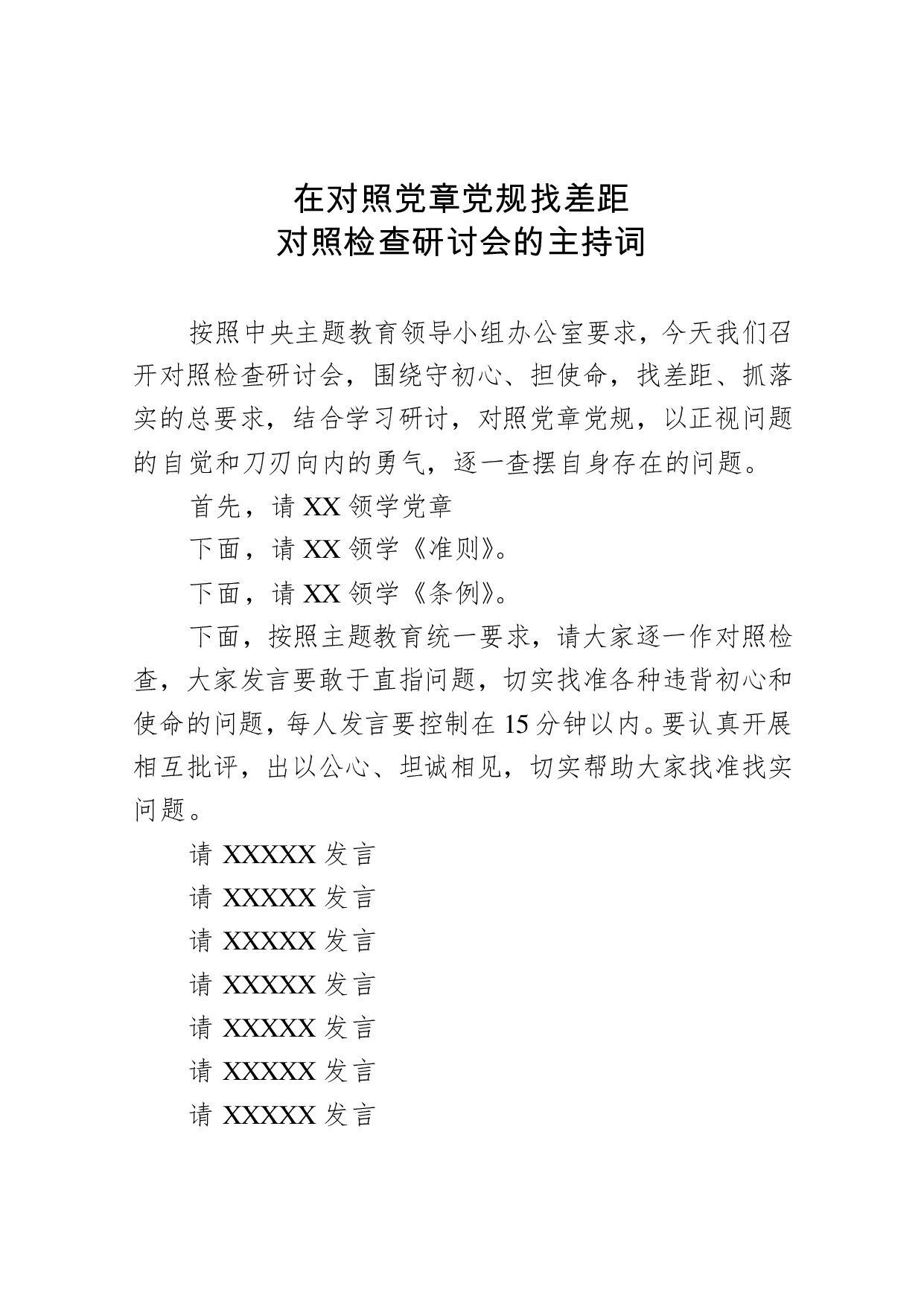 标题:在对照党章党规找差距对照检查研讨会的主持词