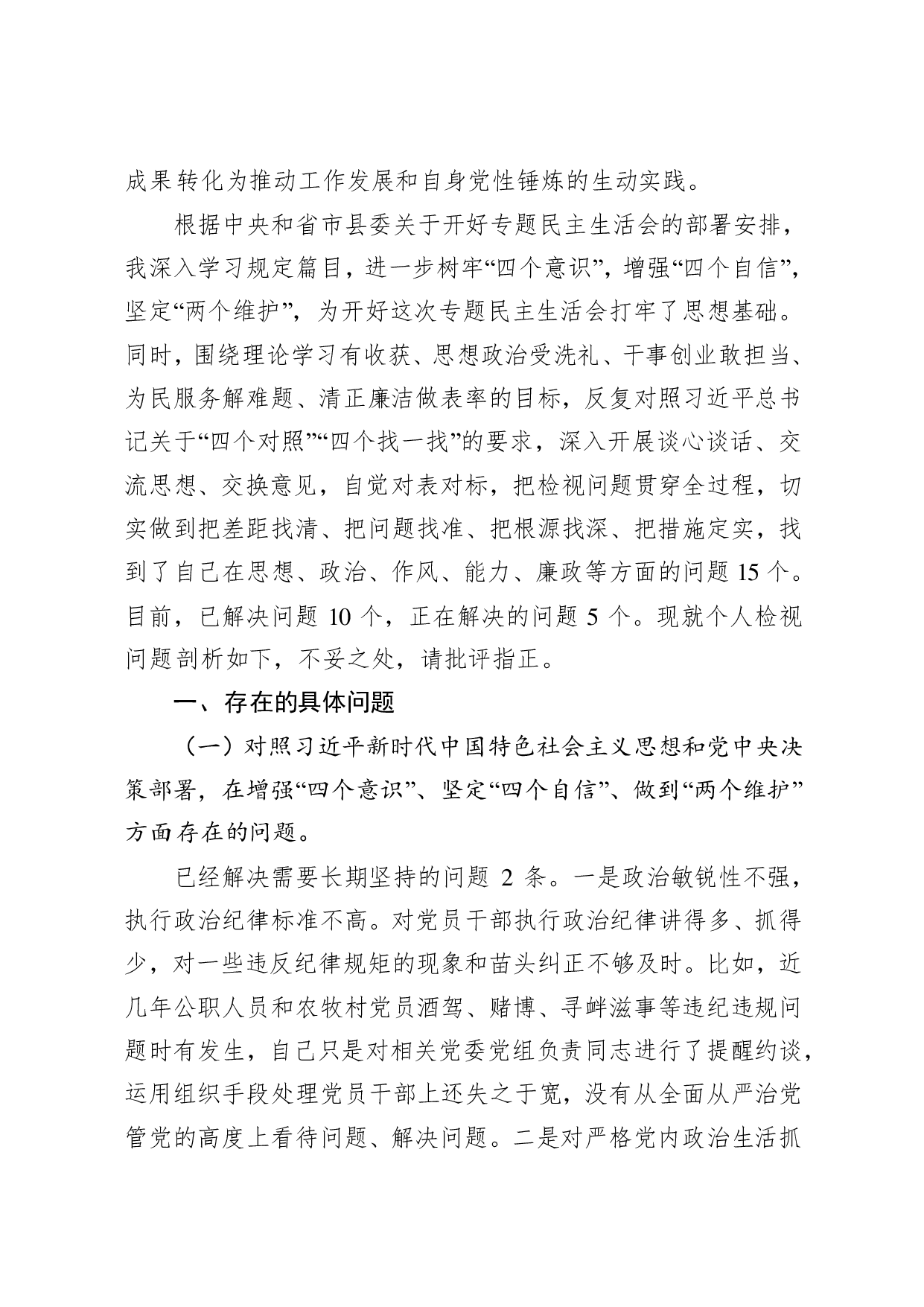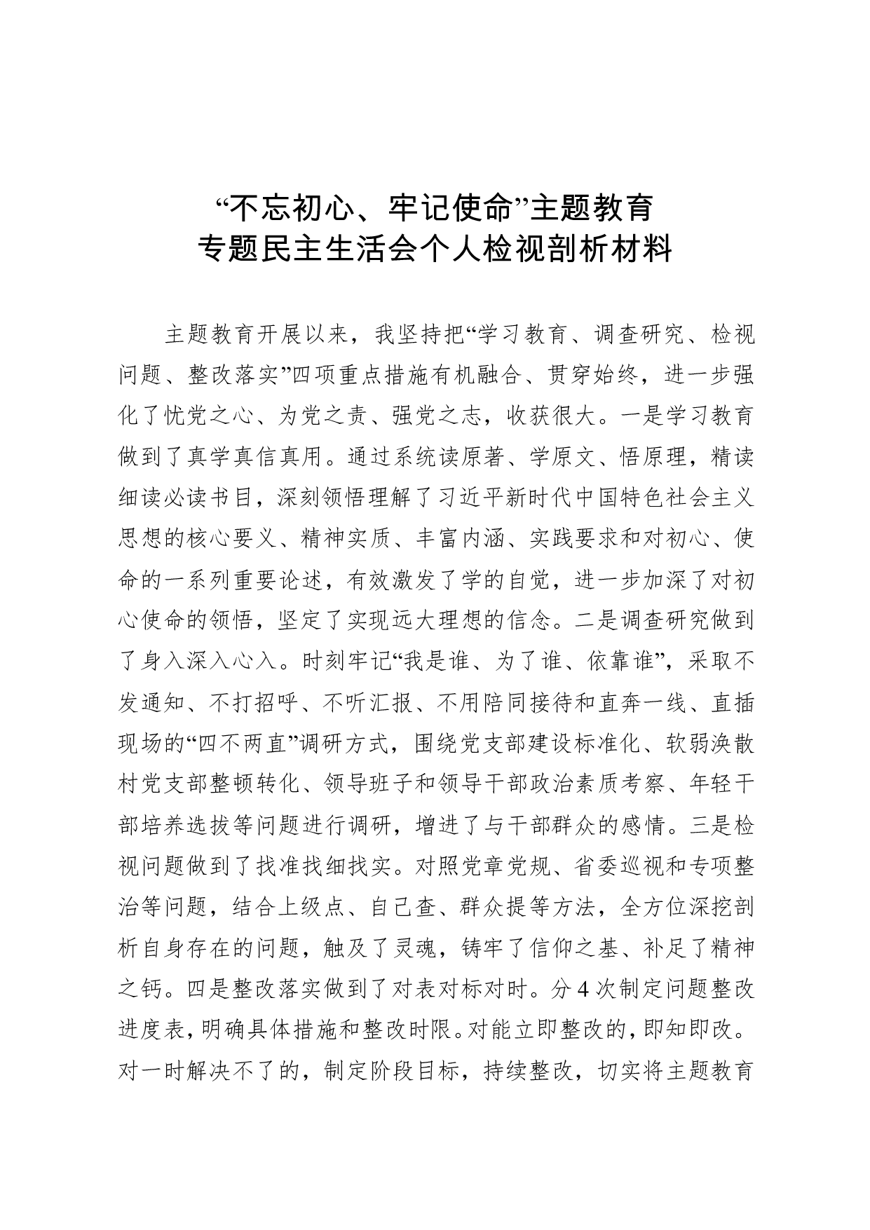 标题:组织部长主题教育专题民主生活会个人检视剖析材料
