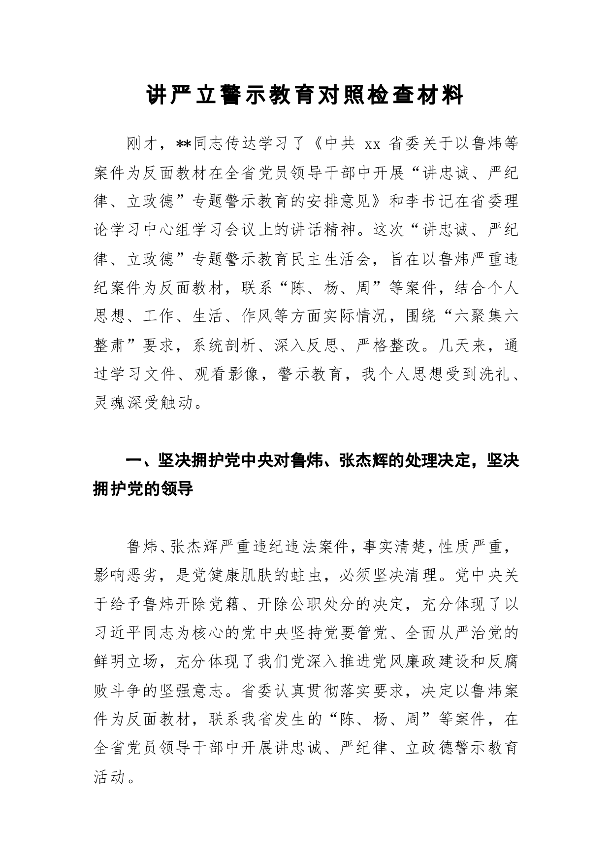 标题:讲严立警示教育对照检查材料3