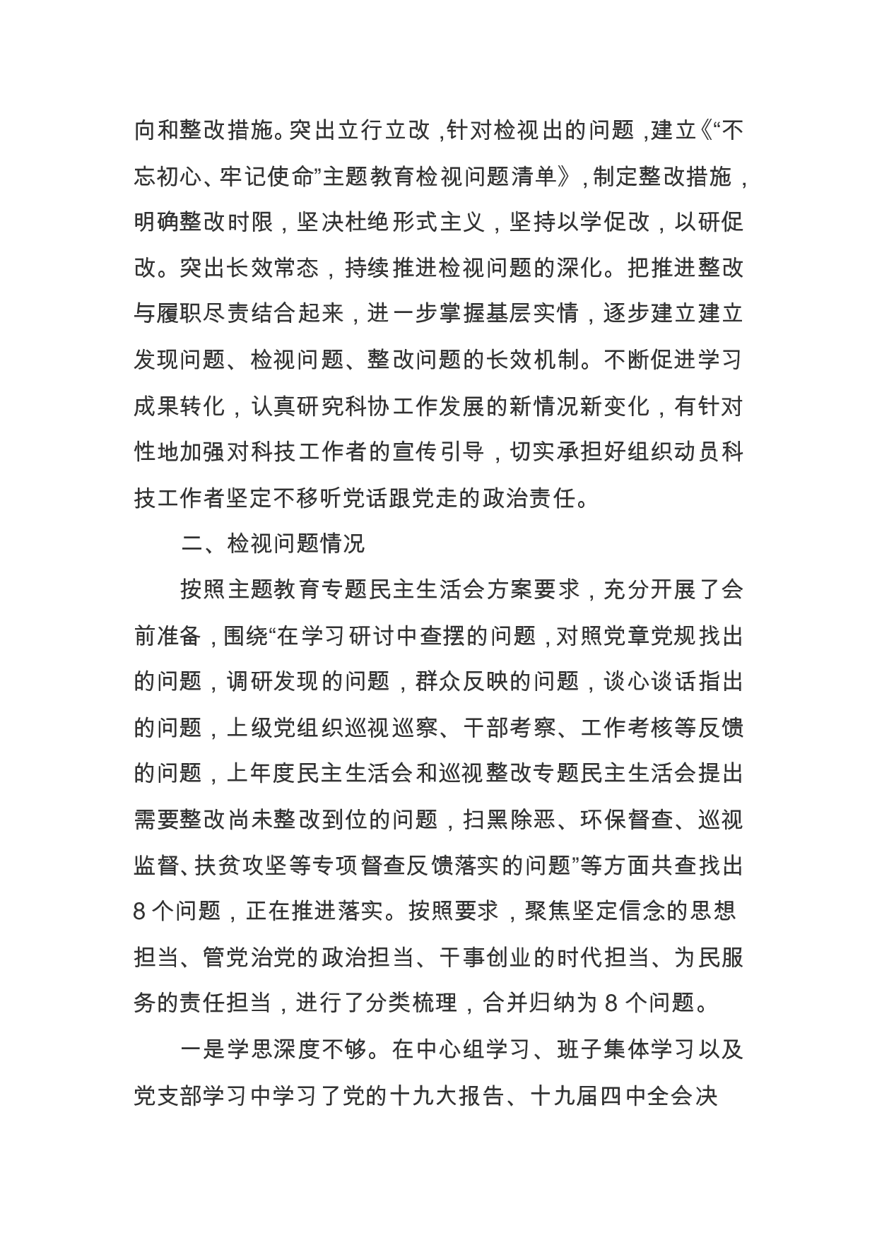 标题:科协主席不忘初心牢记使命主题教育个人检视剖析材料
