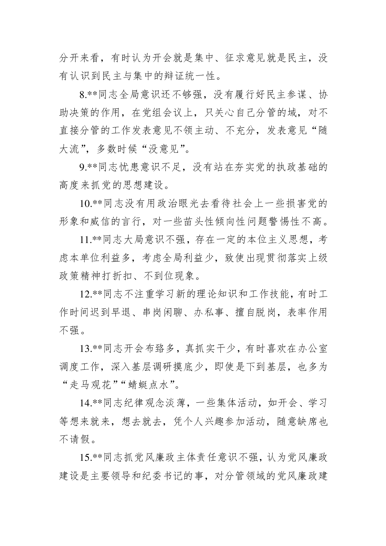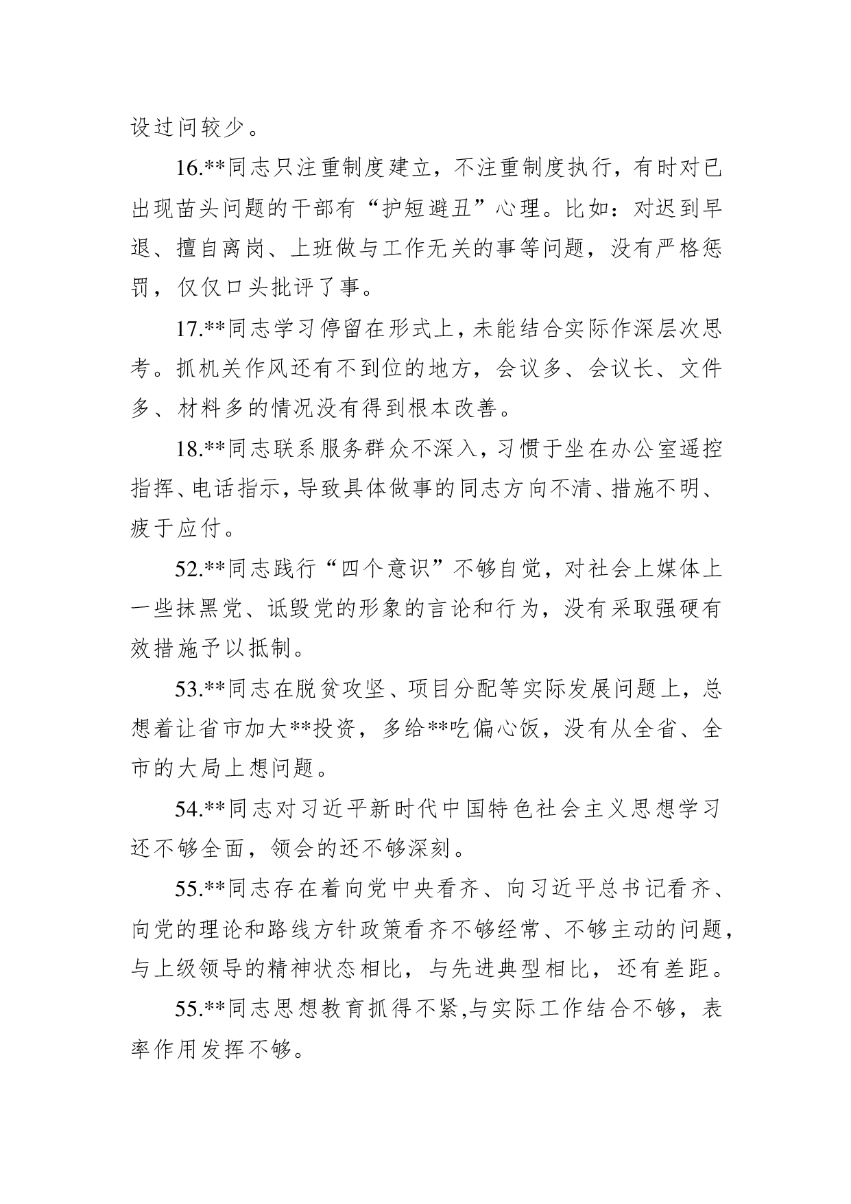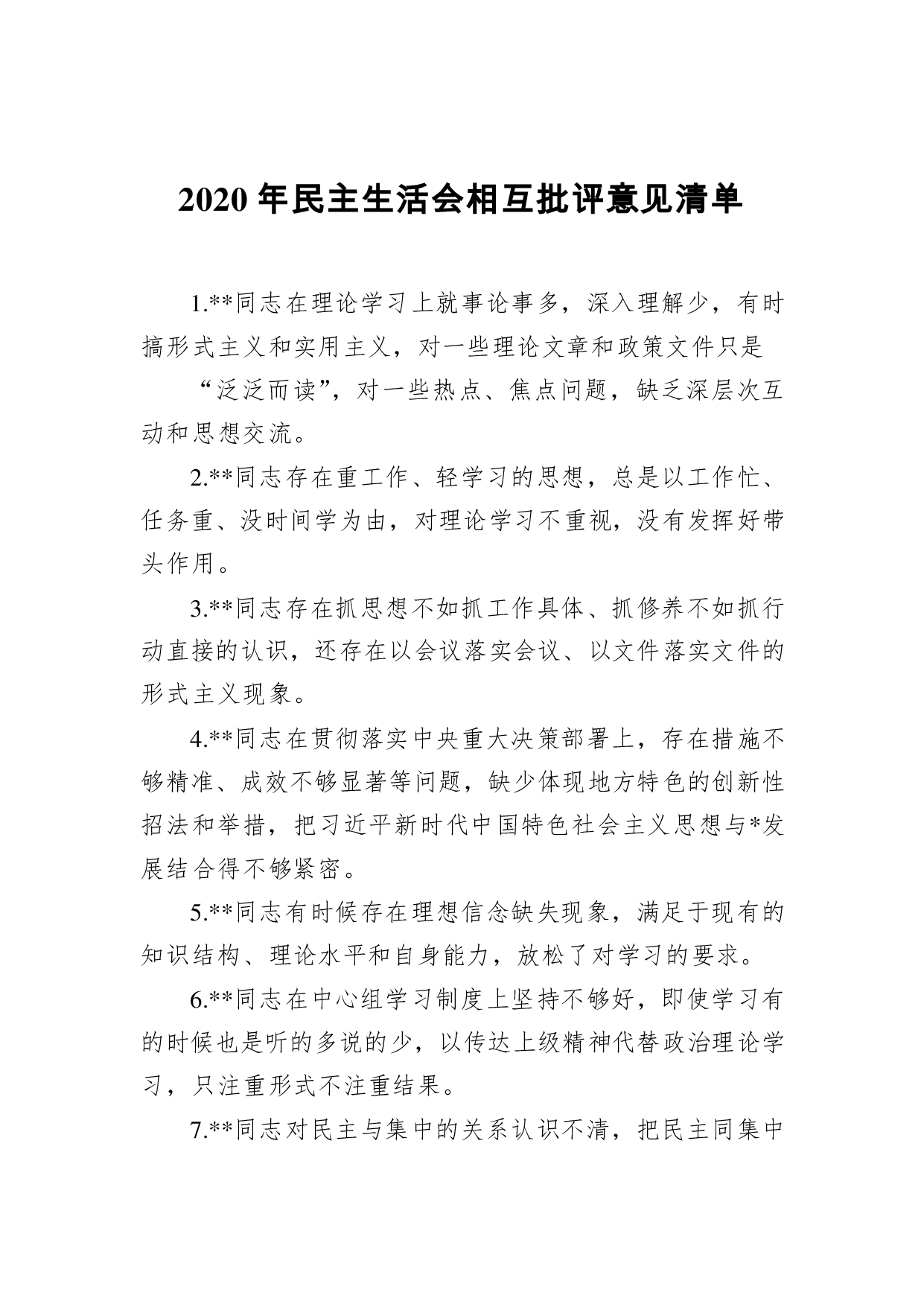标题:2020年民主生活会相互批评意见清单(100条)