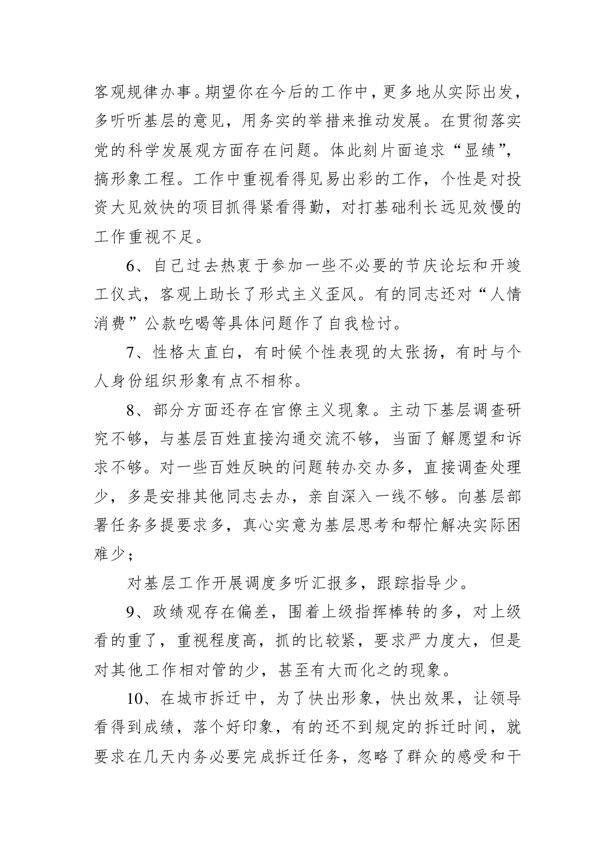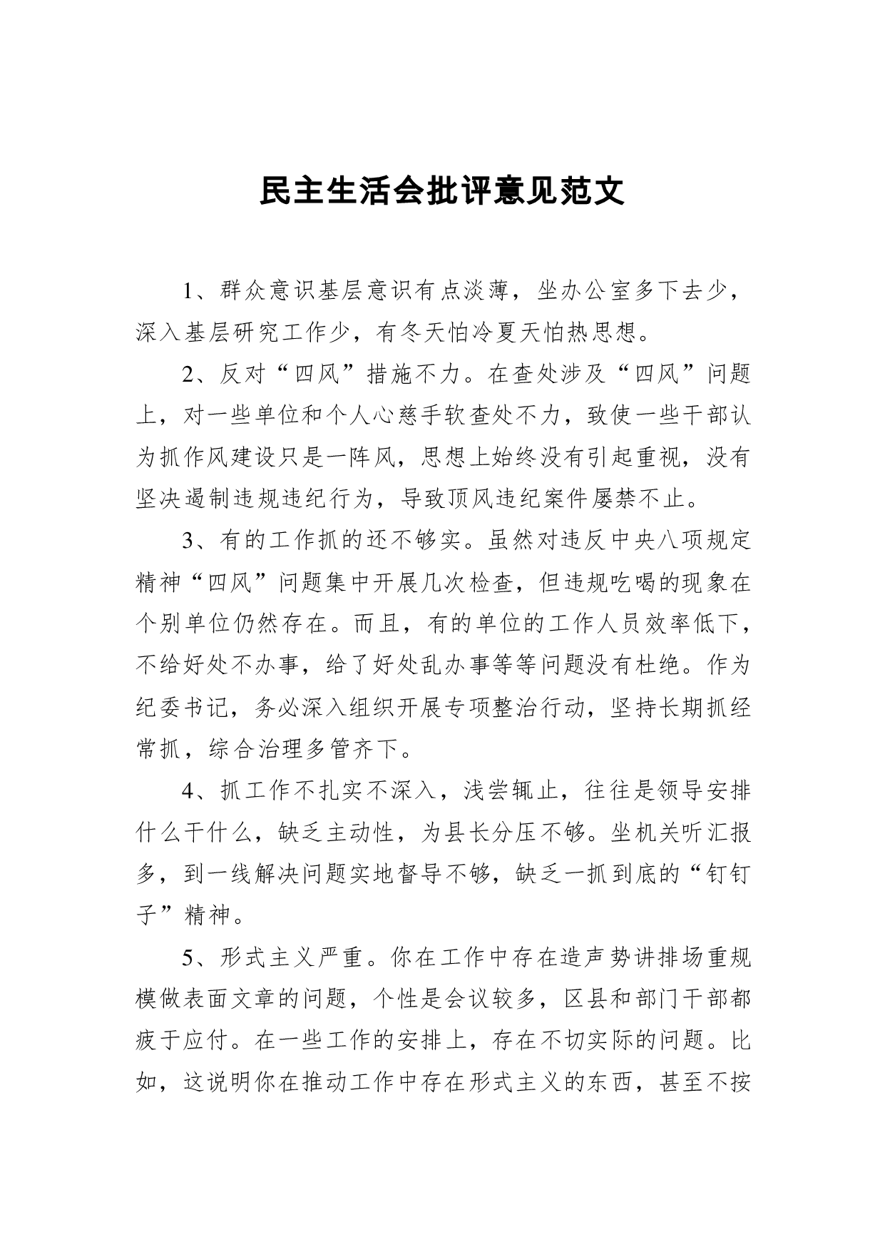 标题:民主生活会批评意见范文