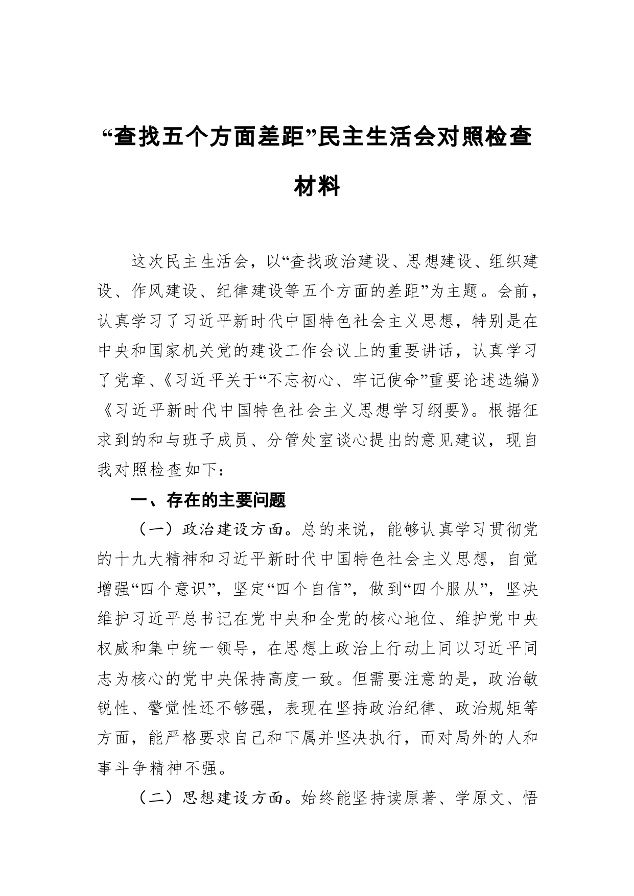标题:“查找五个方面差距”民主生活会对照检查材料