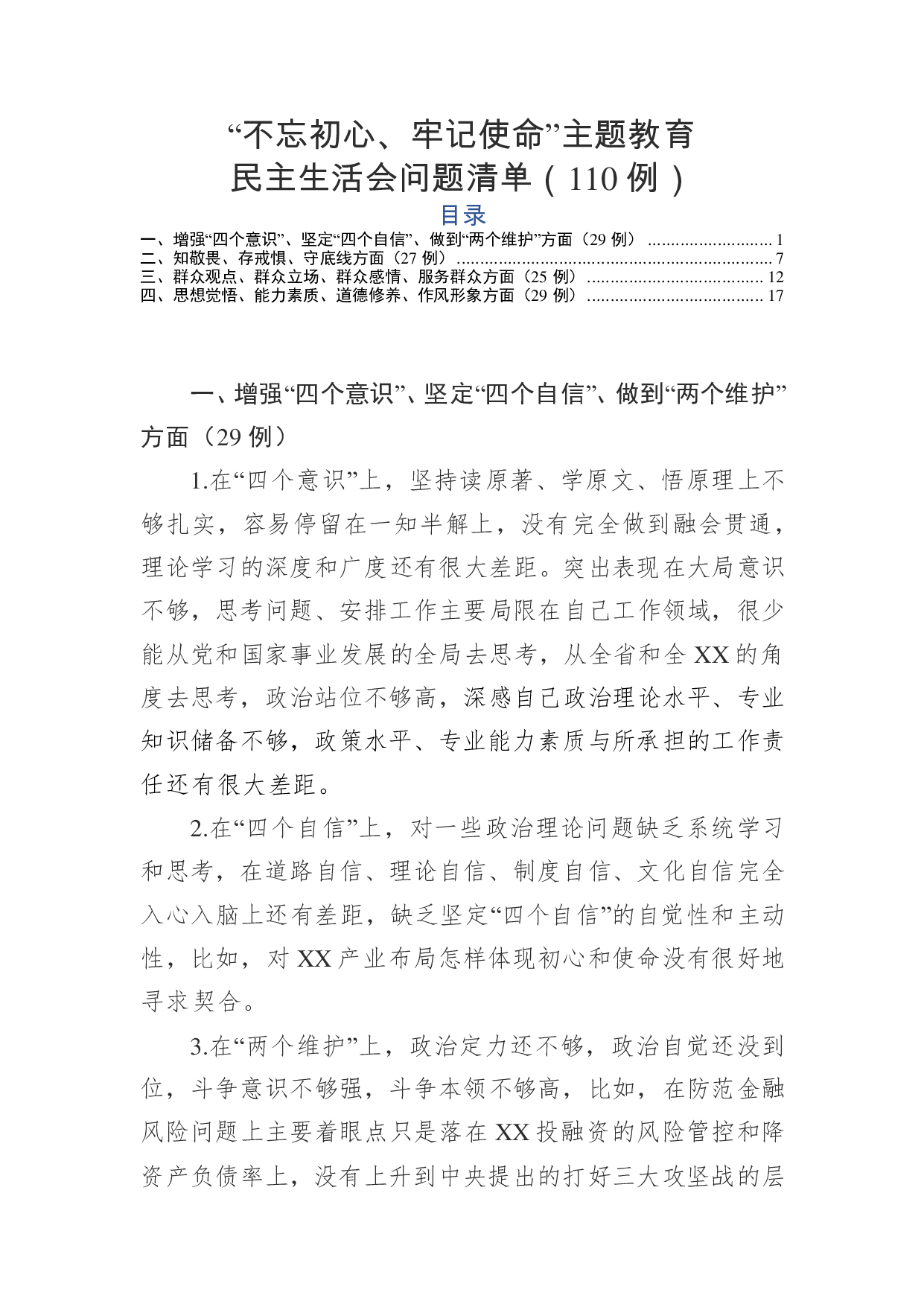 标题:【写作素材】民主生活会检视剖析问题清单110例