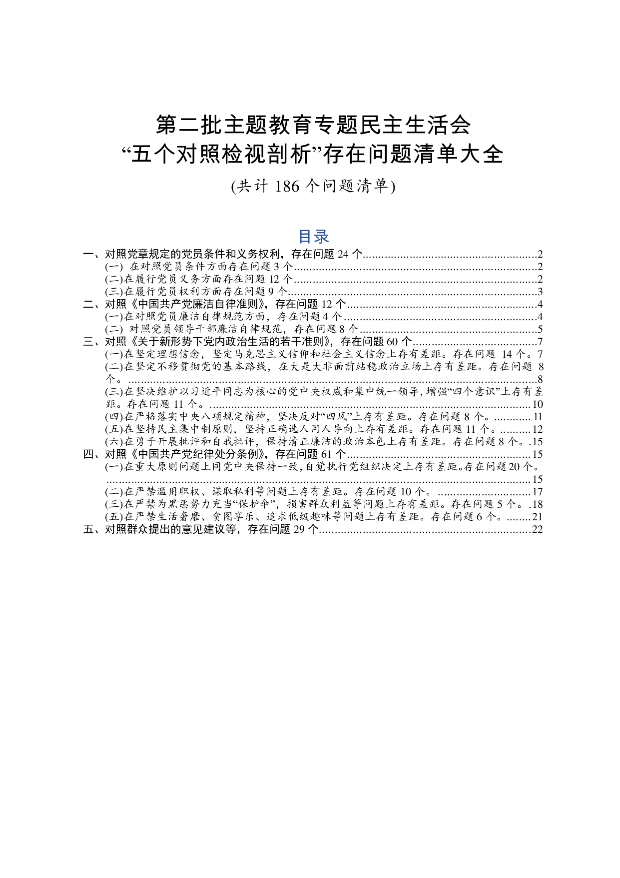 标题:第二批主题教育专题民主生活会五个对照检视剖析存在问题清单大全186个问题清单