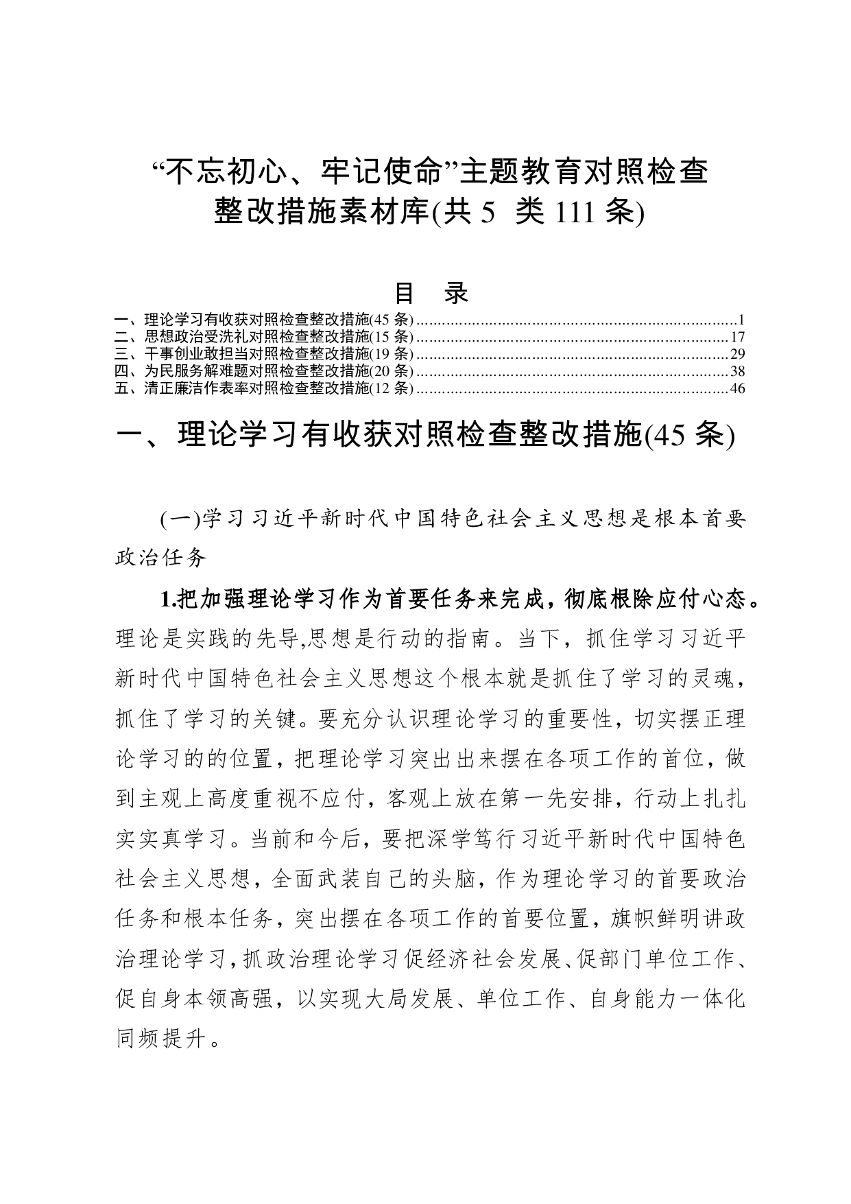 标题:【写作素材】不忘初心牢记使命主题教育对照检查整改措施素材库