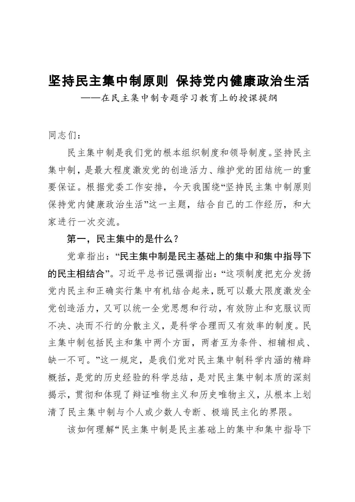 标题:坚持民主集中制原则 保持党内健康政治生活