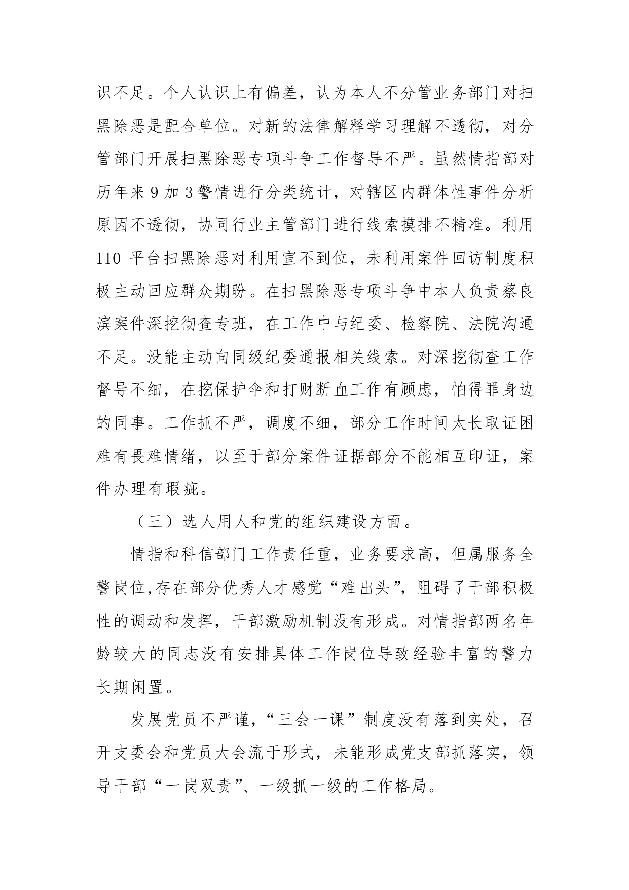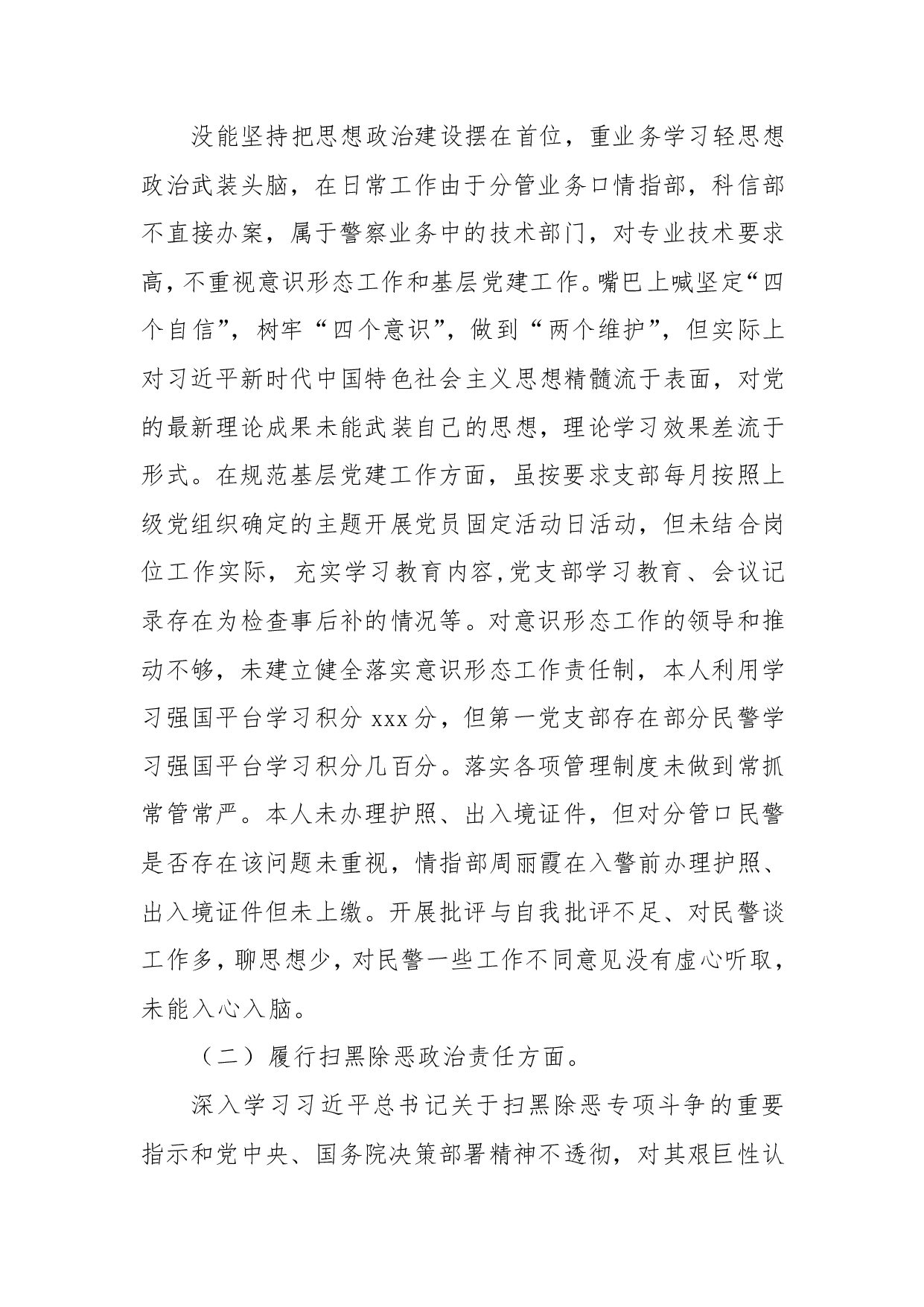 标题:公安局党委领导巡察问题整改专题生活会个人对照检查材料
