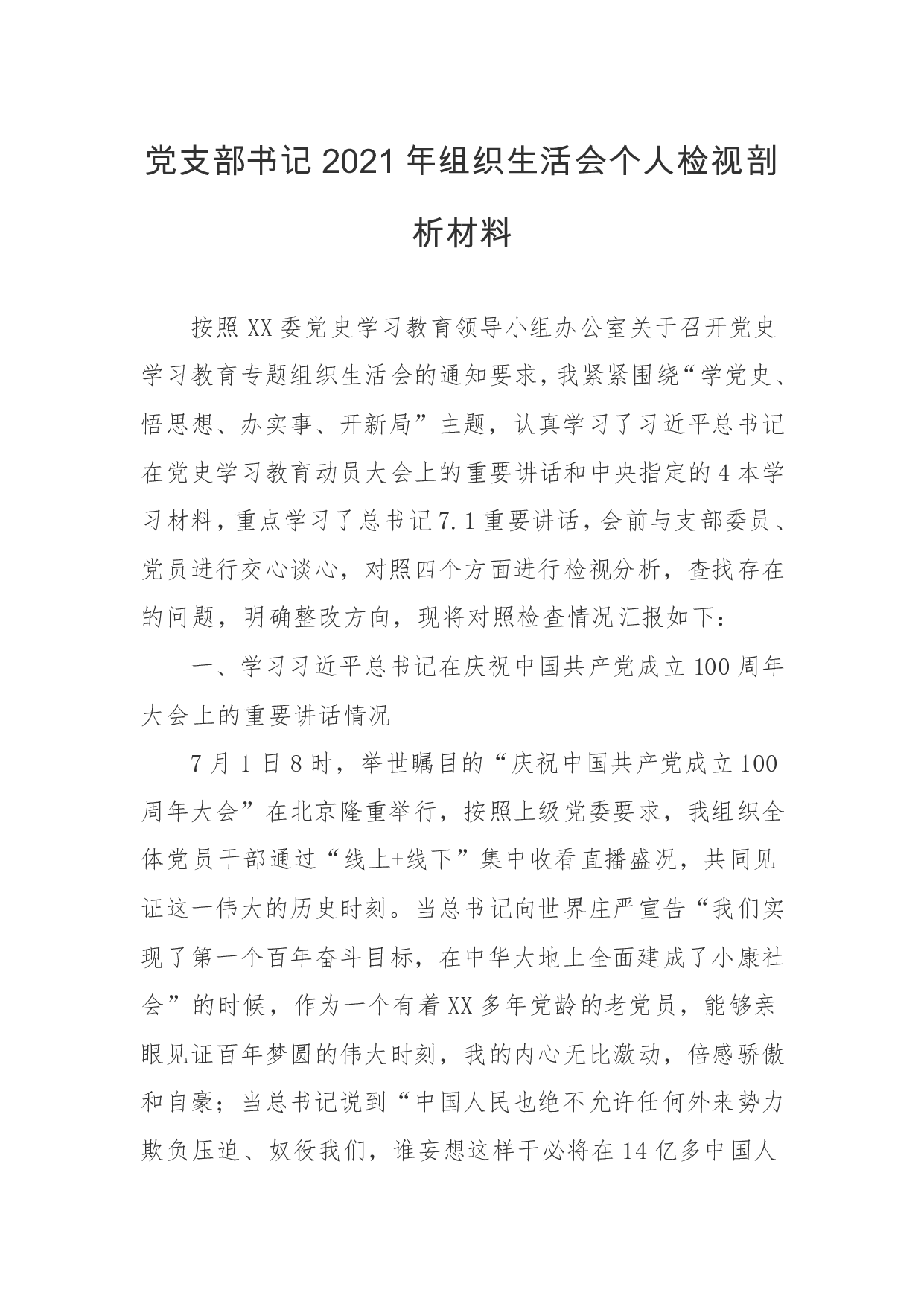 标题:党支部书记2021年组织生活会个人检视剖析材料