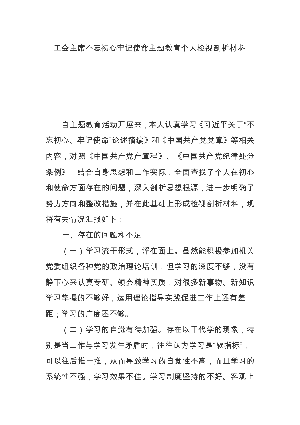 标题:工会主席不忘初心牢记使命主题教育个人检视剖析材料