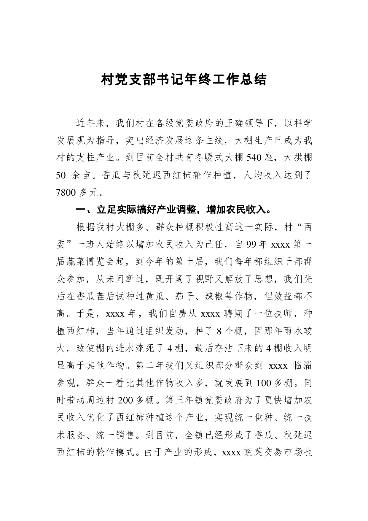 标题:村党支部书记年终工作总结