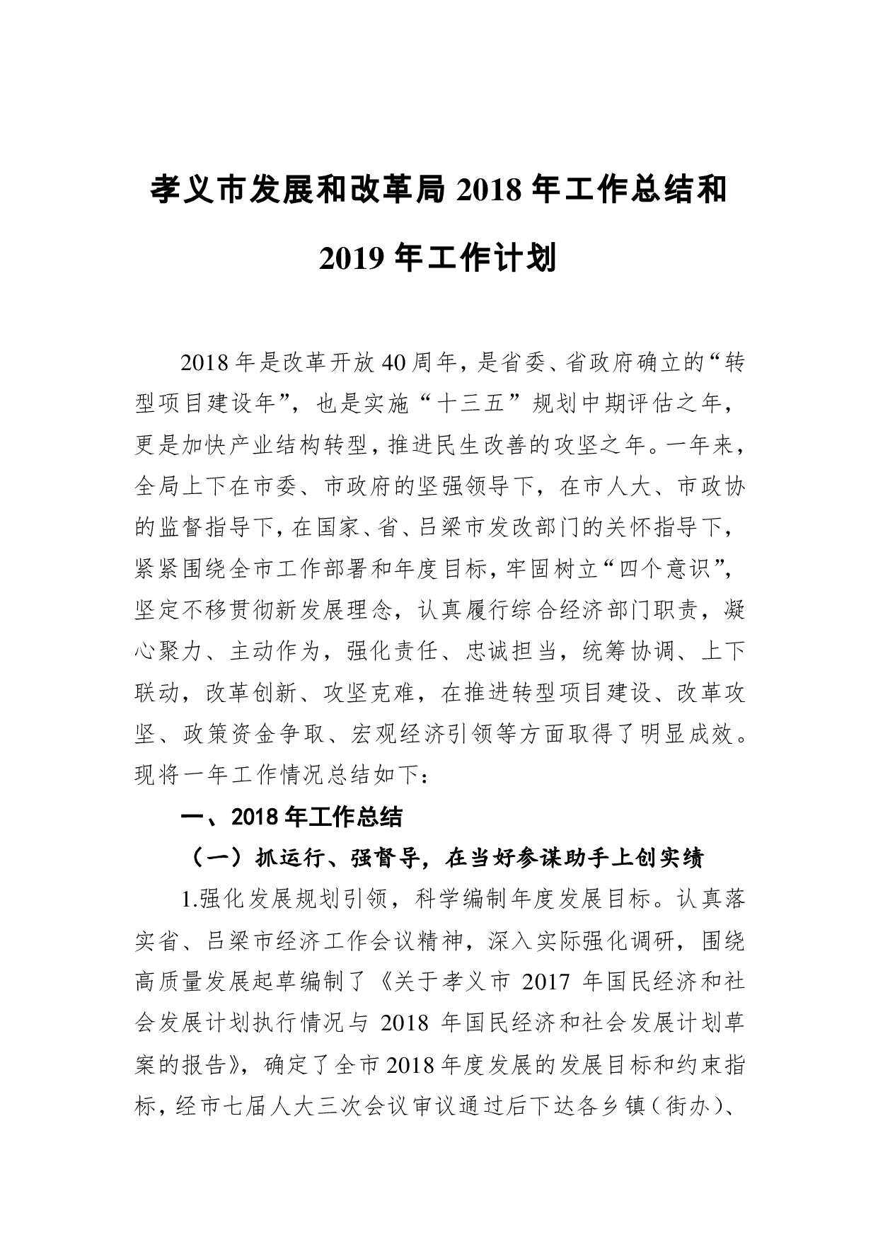 标题:孝义市发展和改革局2018年工作总结和2019年工作计划