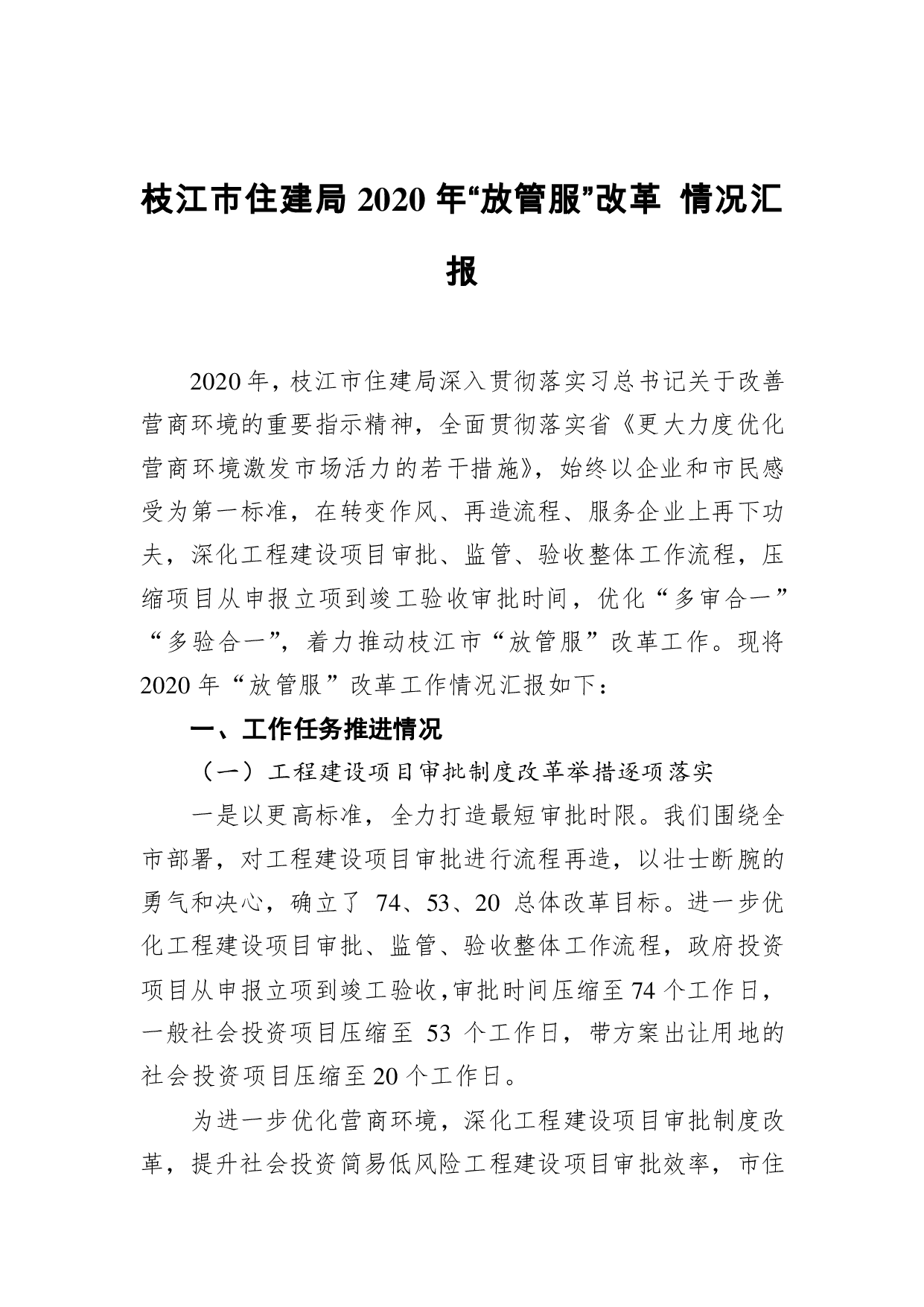 标题:枝江市住建局2020年“放管服”改革 情况汇报