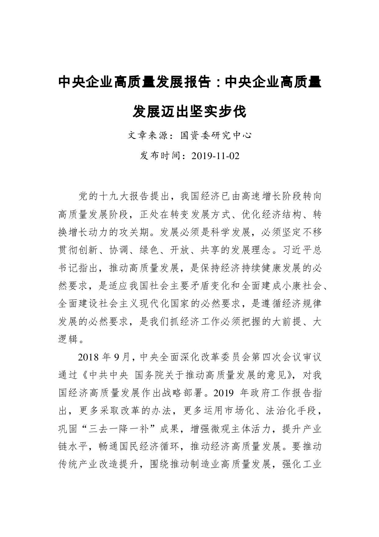 标题:中央企业高质量发展报告:中央企业高质量发展迈出坚实步伐