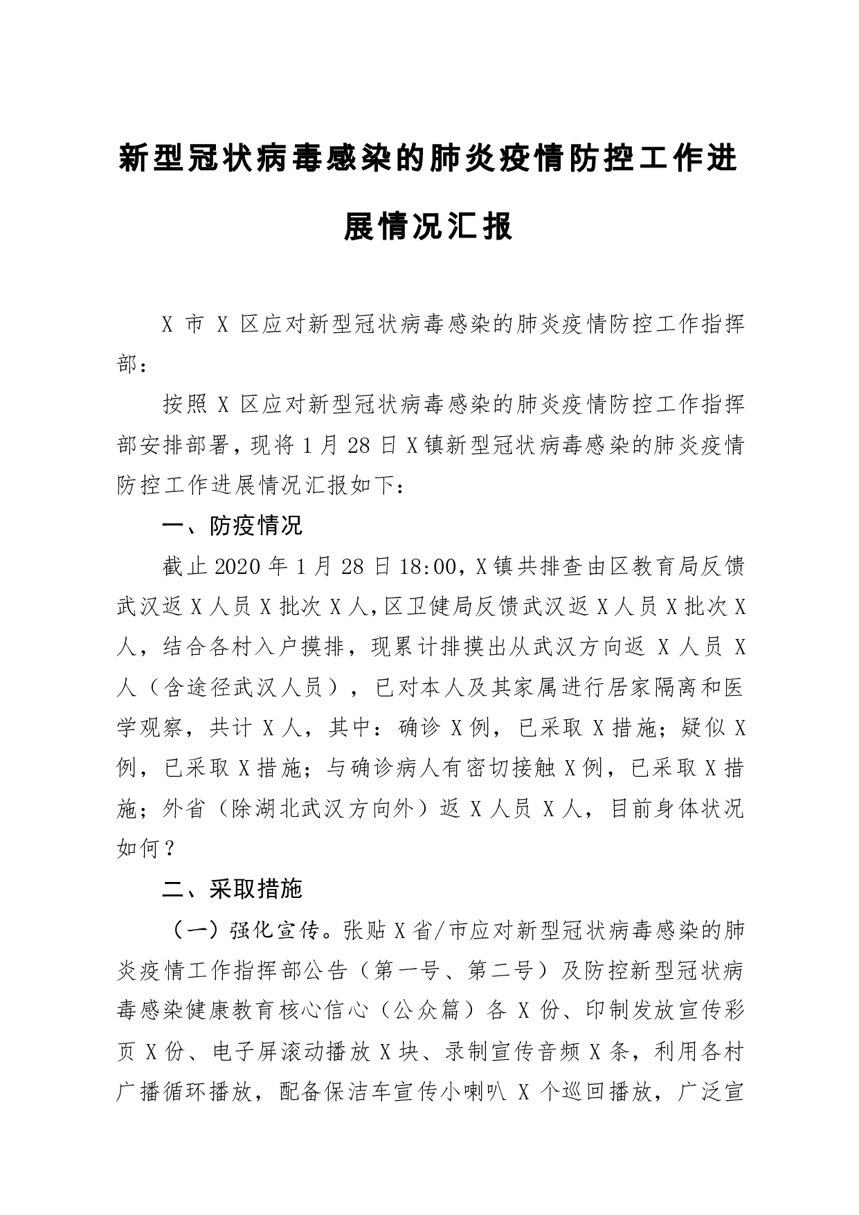 标题:新型冠状病毒感染的肺炎疫情防控工作进展情况汇报