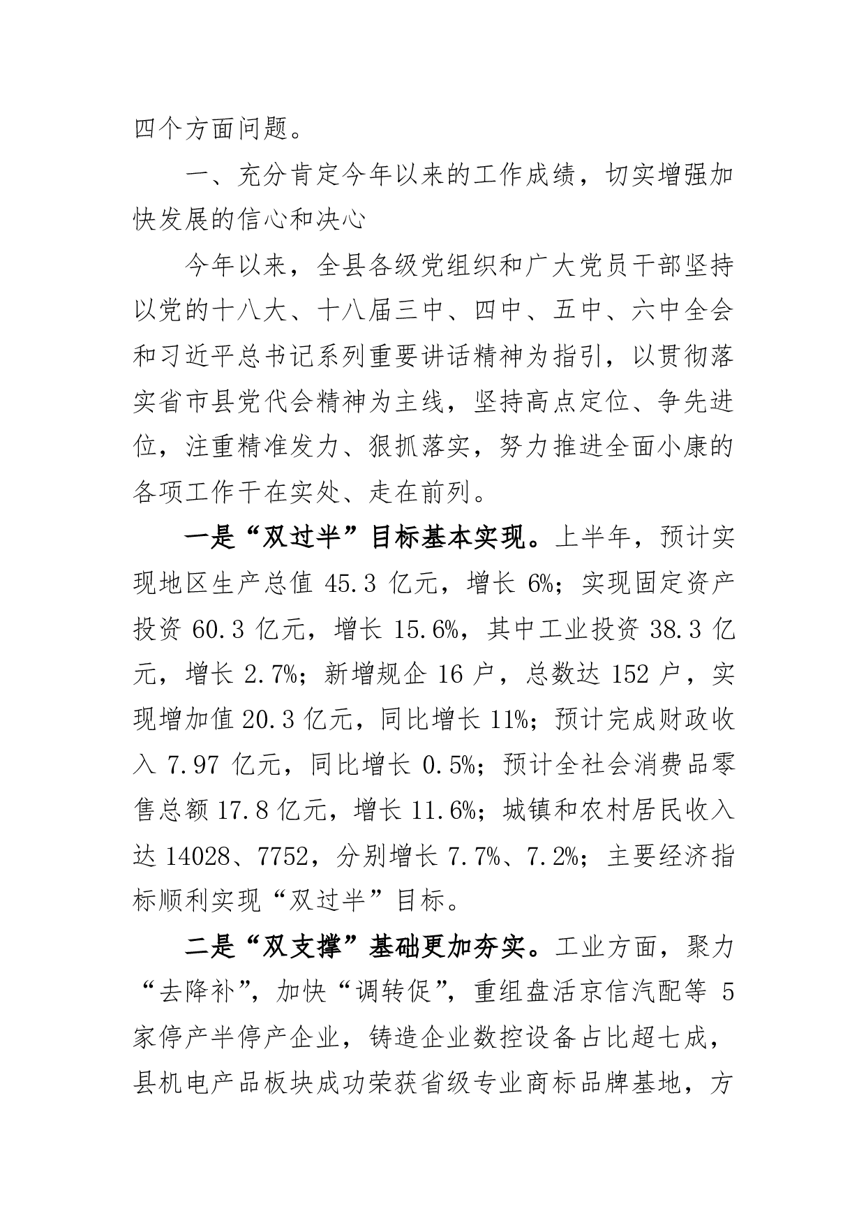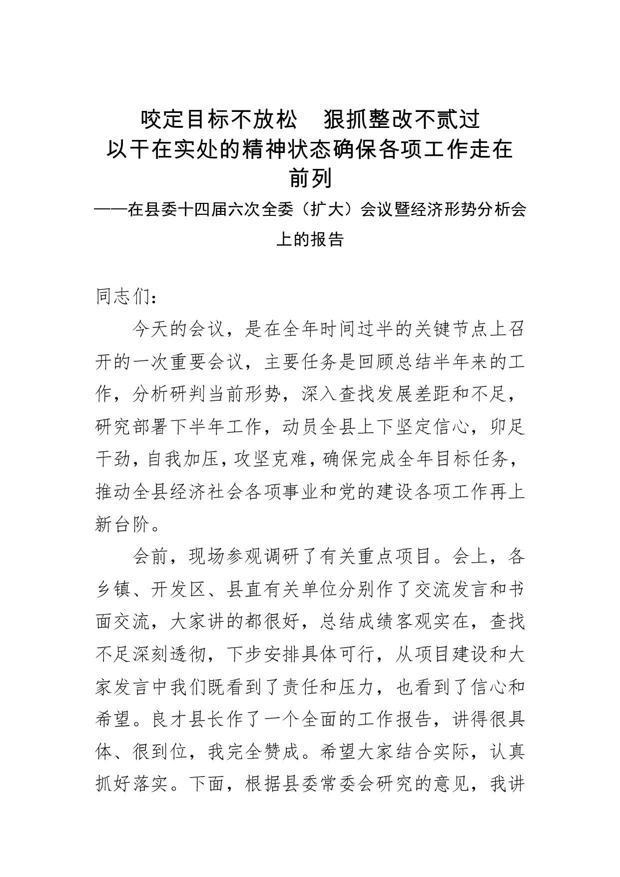 标题:在县委十四届六次全委(扩大)会议暨经济形势分析会上的报告