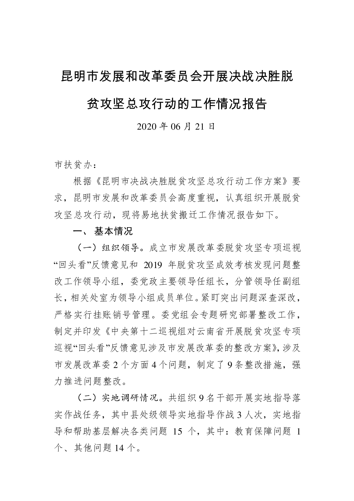 标题:昆明市发展和改革委员会开展决战决胜脱贫攻坚总攻行动的工作情况报告