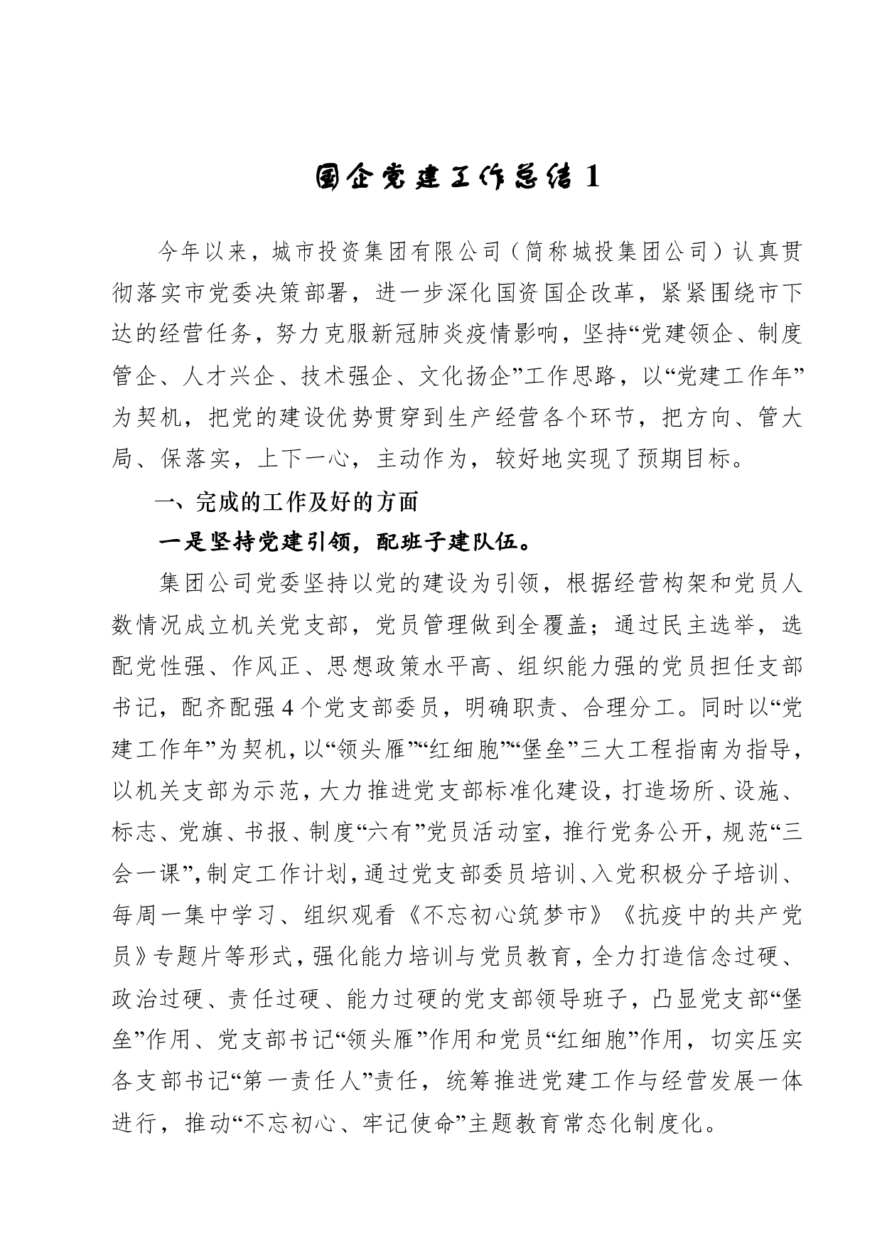 标题:国企党建工作总结汇编(5篇)