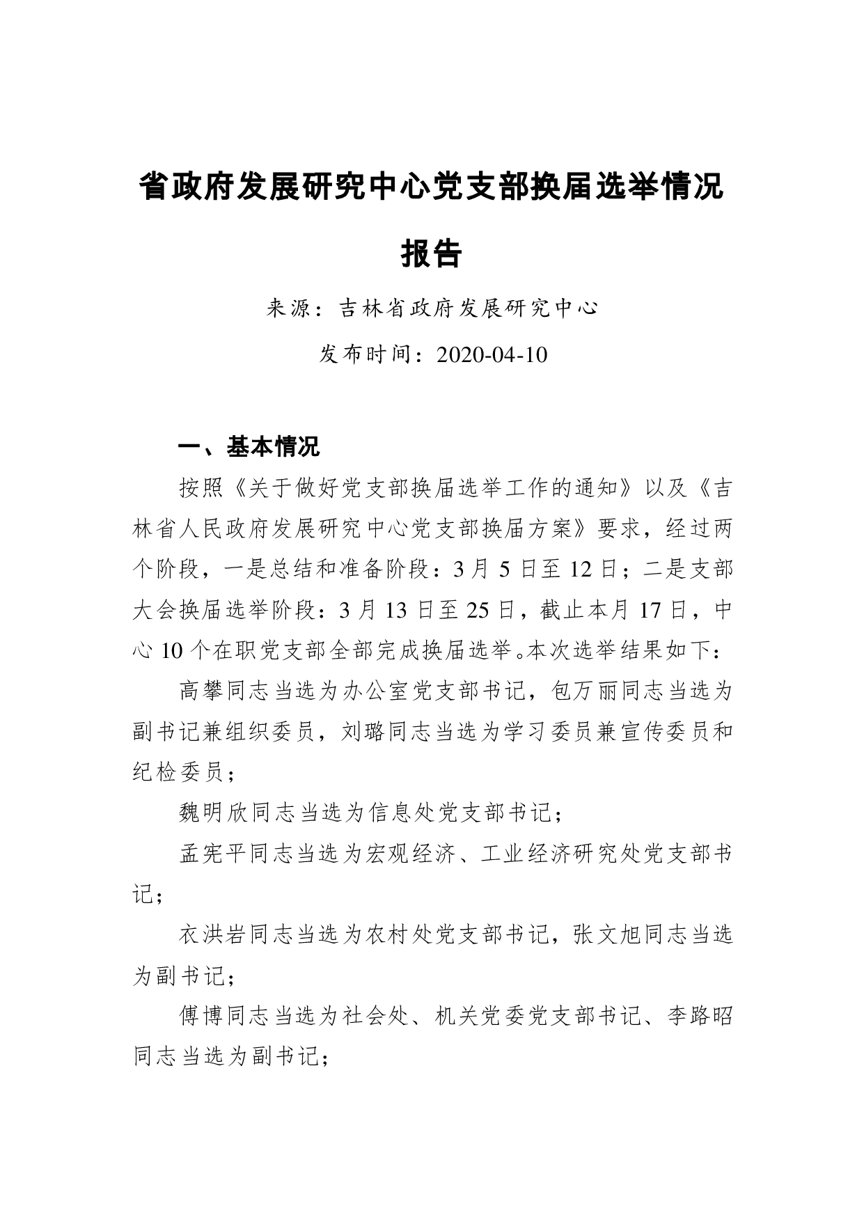 标题:省政府发展研究中心党支部换届选举情况报告
