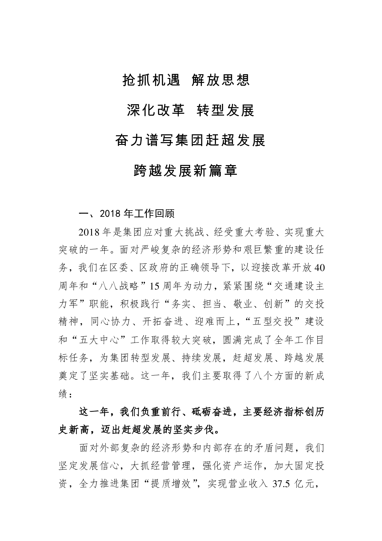 标题:抢抓机遇 解放思想 深化改革 转型发展 奋力谱写集团赶超发展 跨越发展新篇章