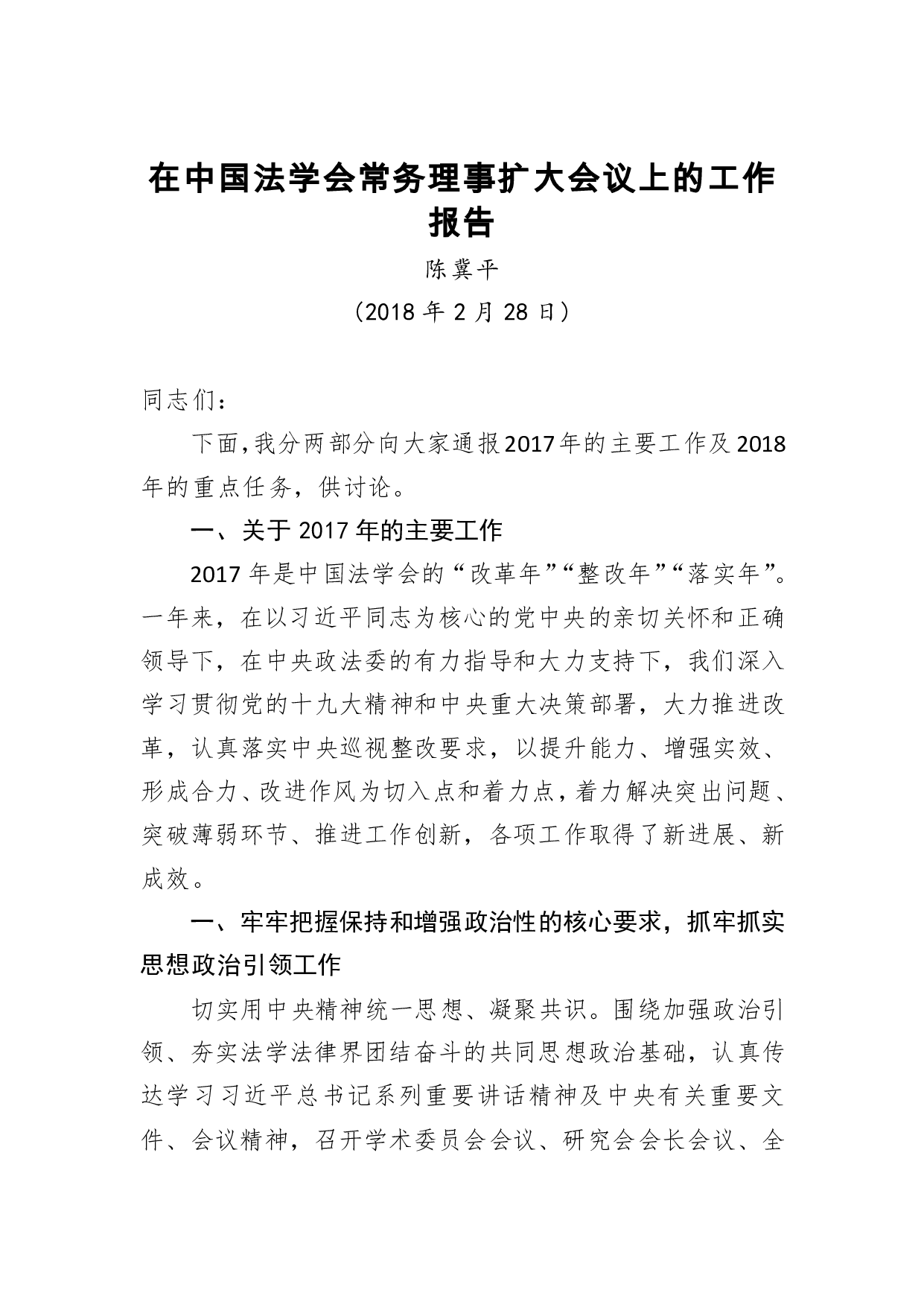 标题:陈冀平:在中国法学会常务理事扩大会议上的工作报告