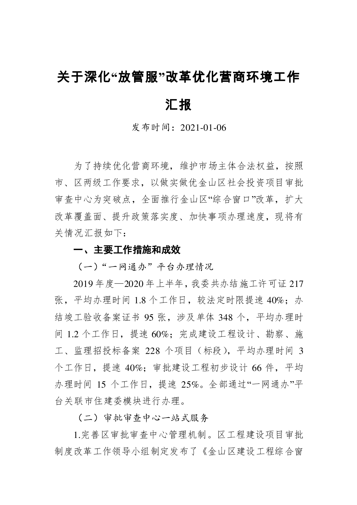 标题:关于深化“放管服”改革优化营商环境工作汇报