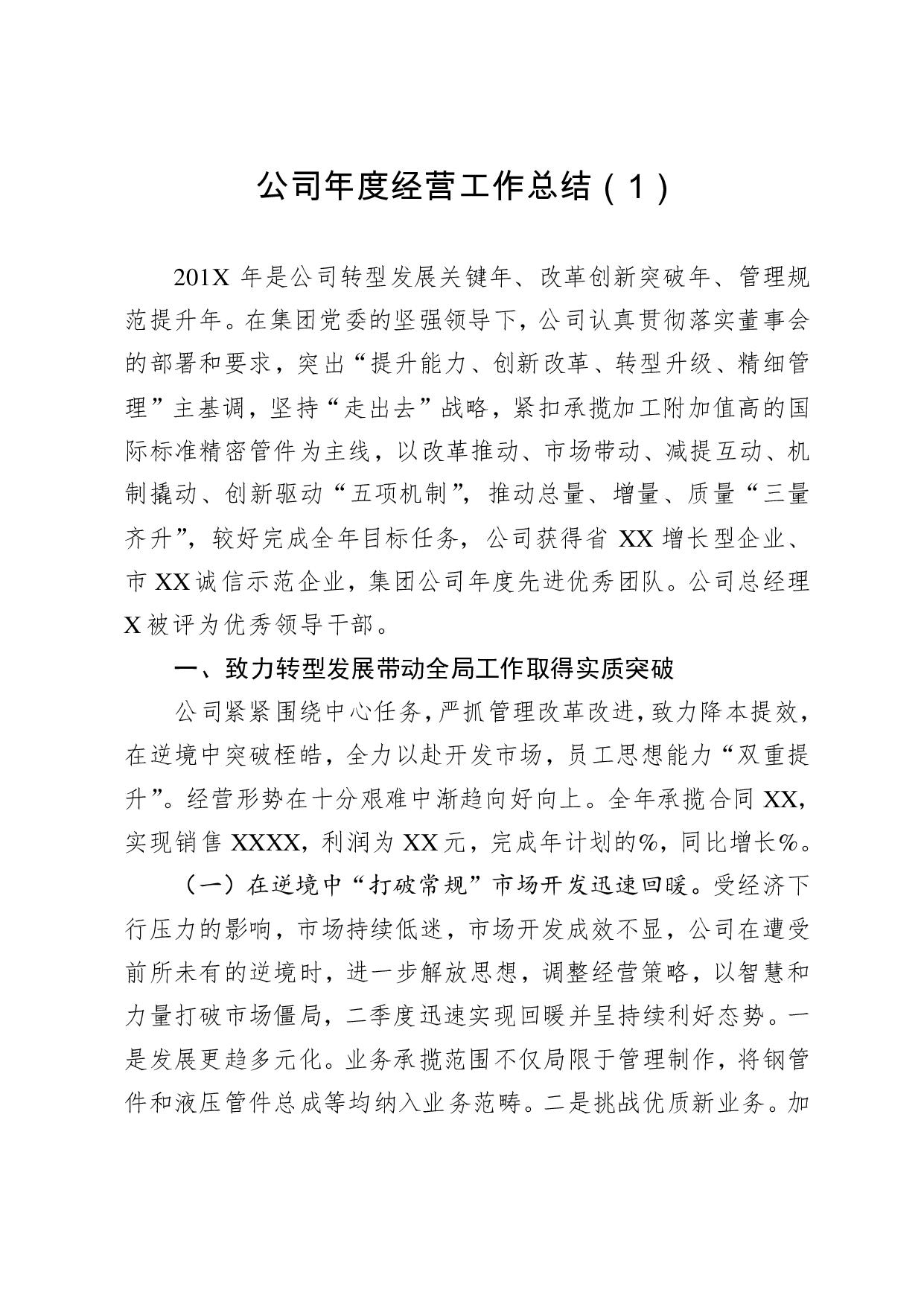标题:公司(经营+党建)2019年工作总结及2020年工作计划 (1)