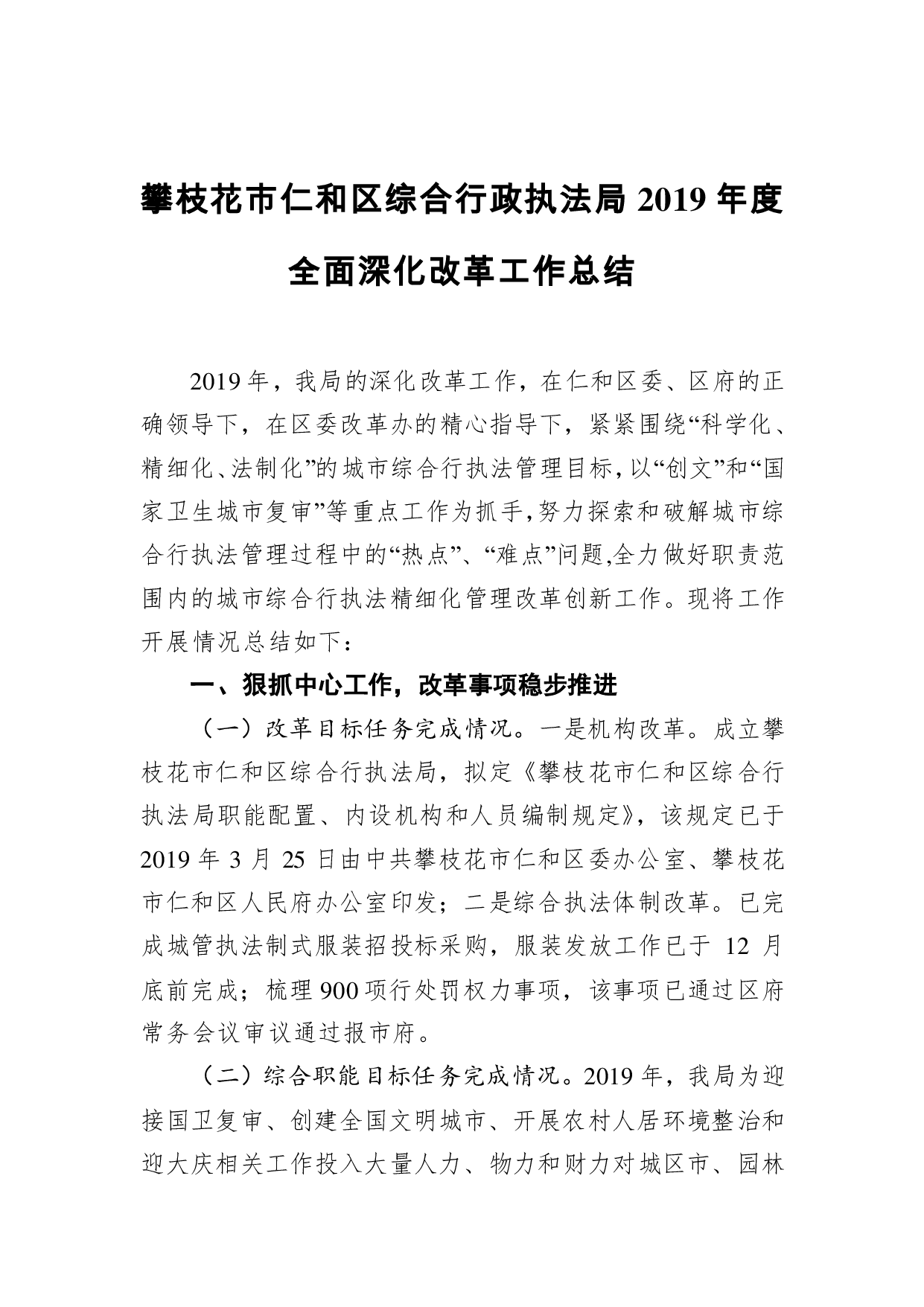 标题:攀枝花市仁和区综合行政执法局2019年度全面深化改革工作总结